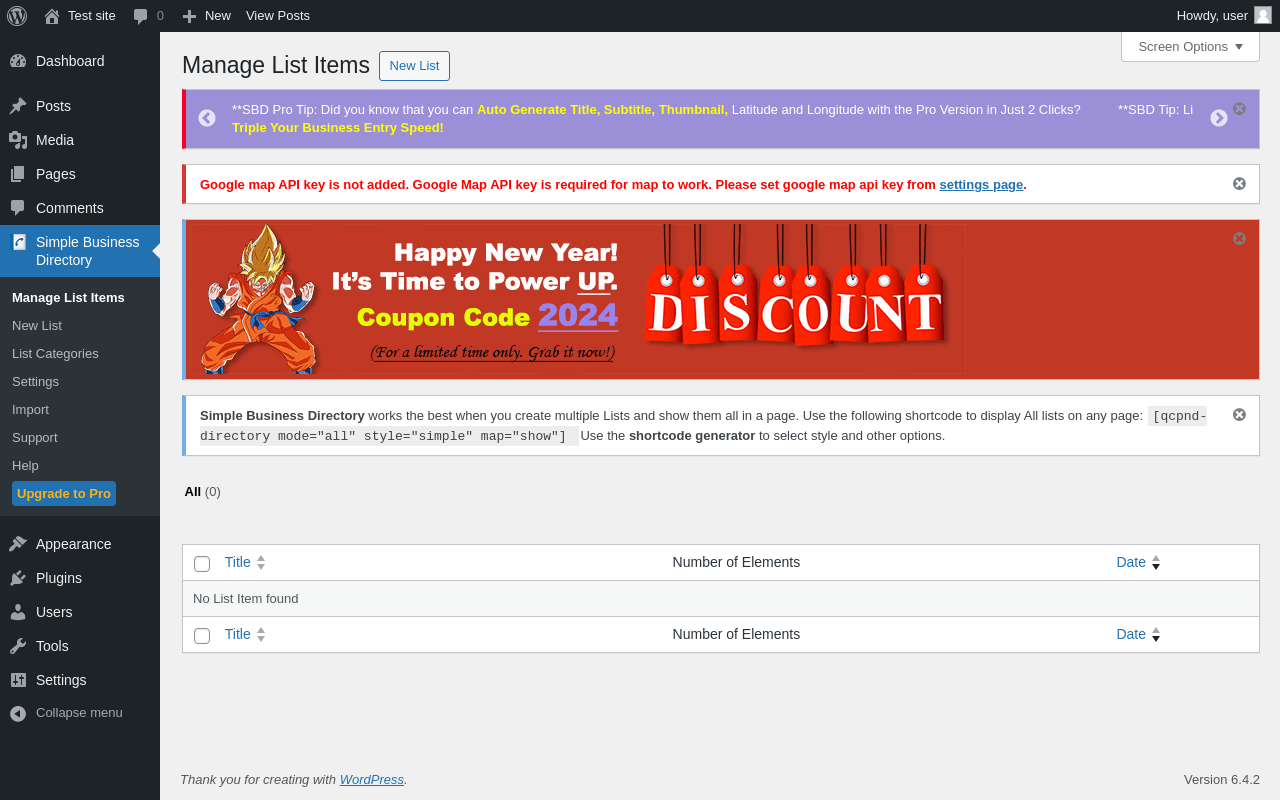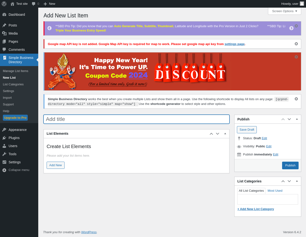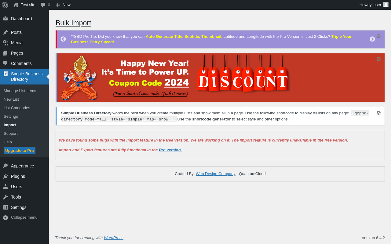 Does Simple Business Directory work with WordPress 6.4.2 and PHP 8.1.12? A smoke test was performed on .