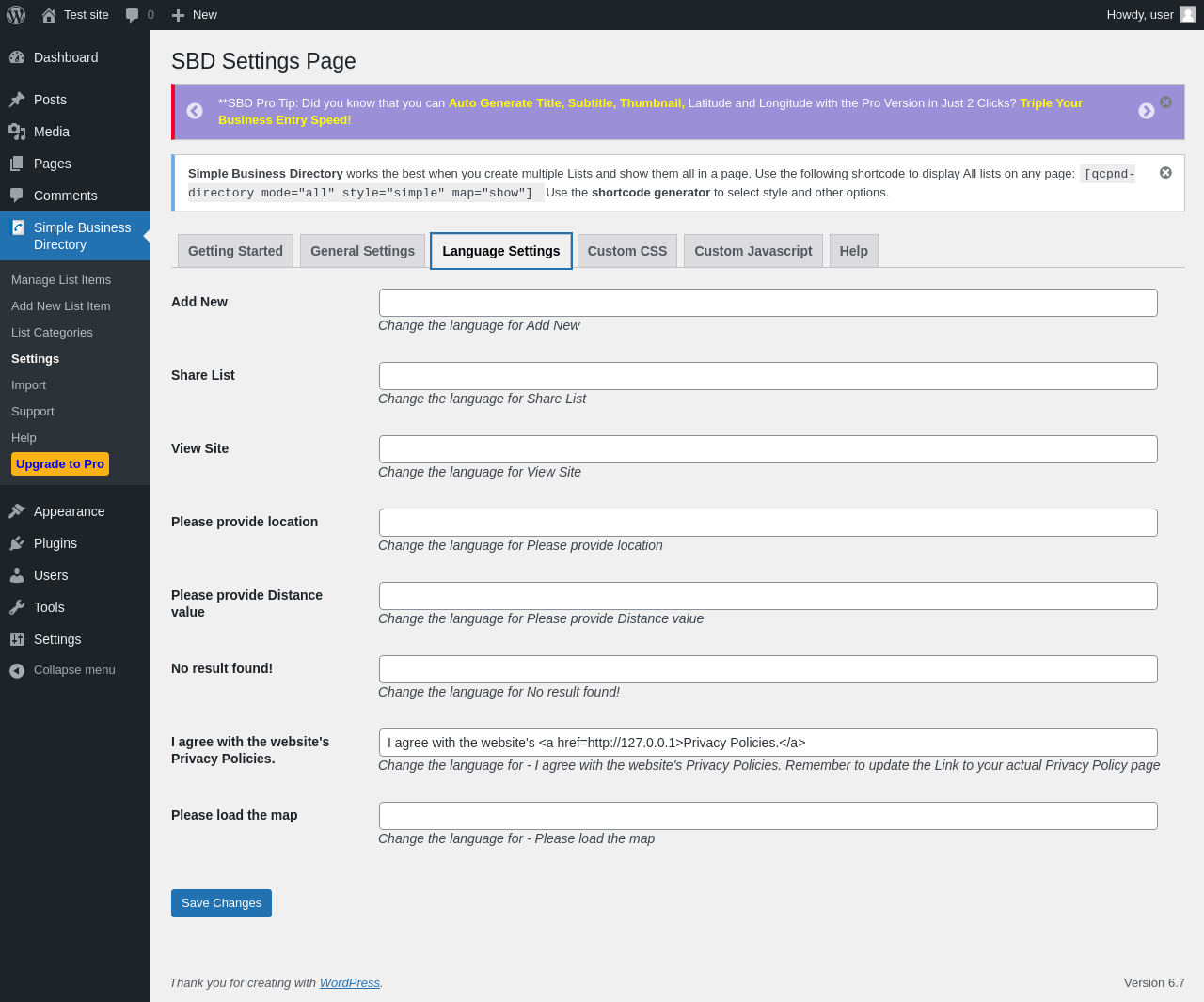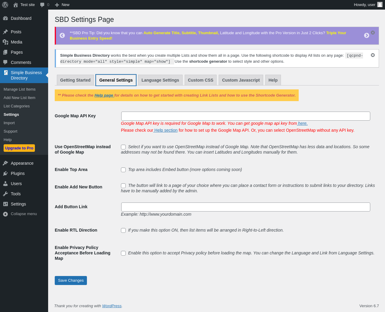 Does Simple Business Directory work with WordPress 6.7 and PHP 8.1.12? A smoke test was performed on .