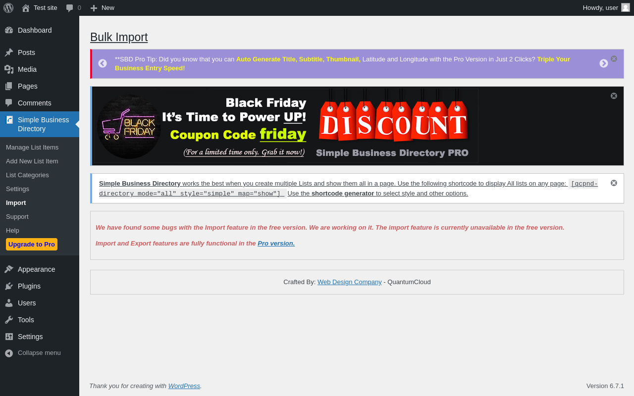 Does Simple Business Directory work with WordPress 6.7.1 and PHP 8.1.12? A smoke test was performed on .