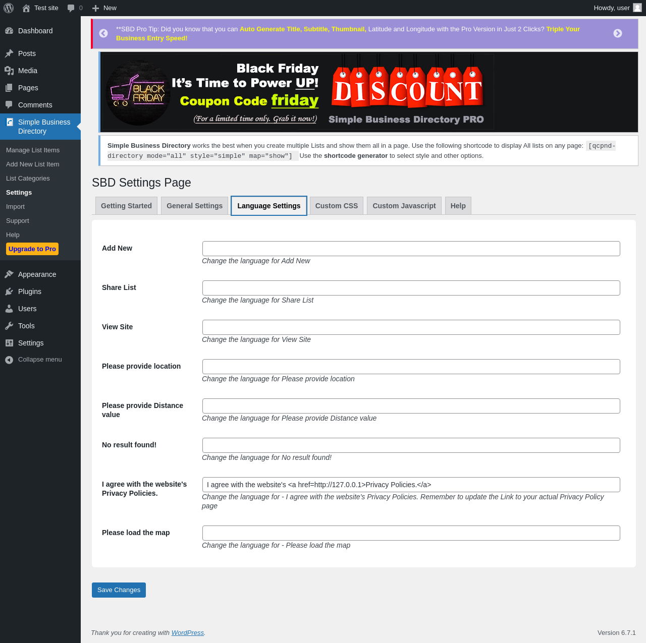 Does Simple Business Directory work with WordPress 6.7.1 and PHP 8.1.12? A smoke test was performed on .