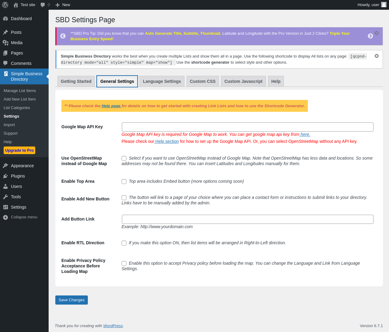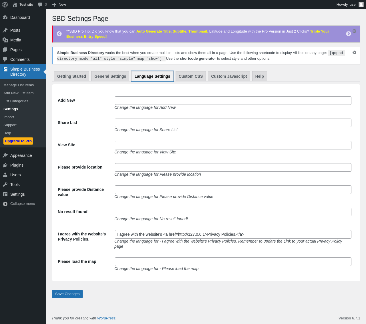 Does Simple Business Directory work with WordPress 6.7.1 and PHP 8.1.12? A smoke test was performed on .