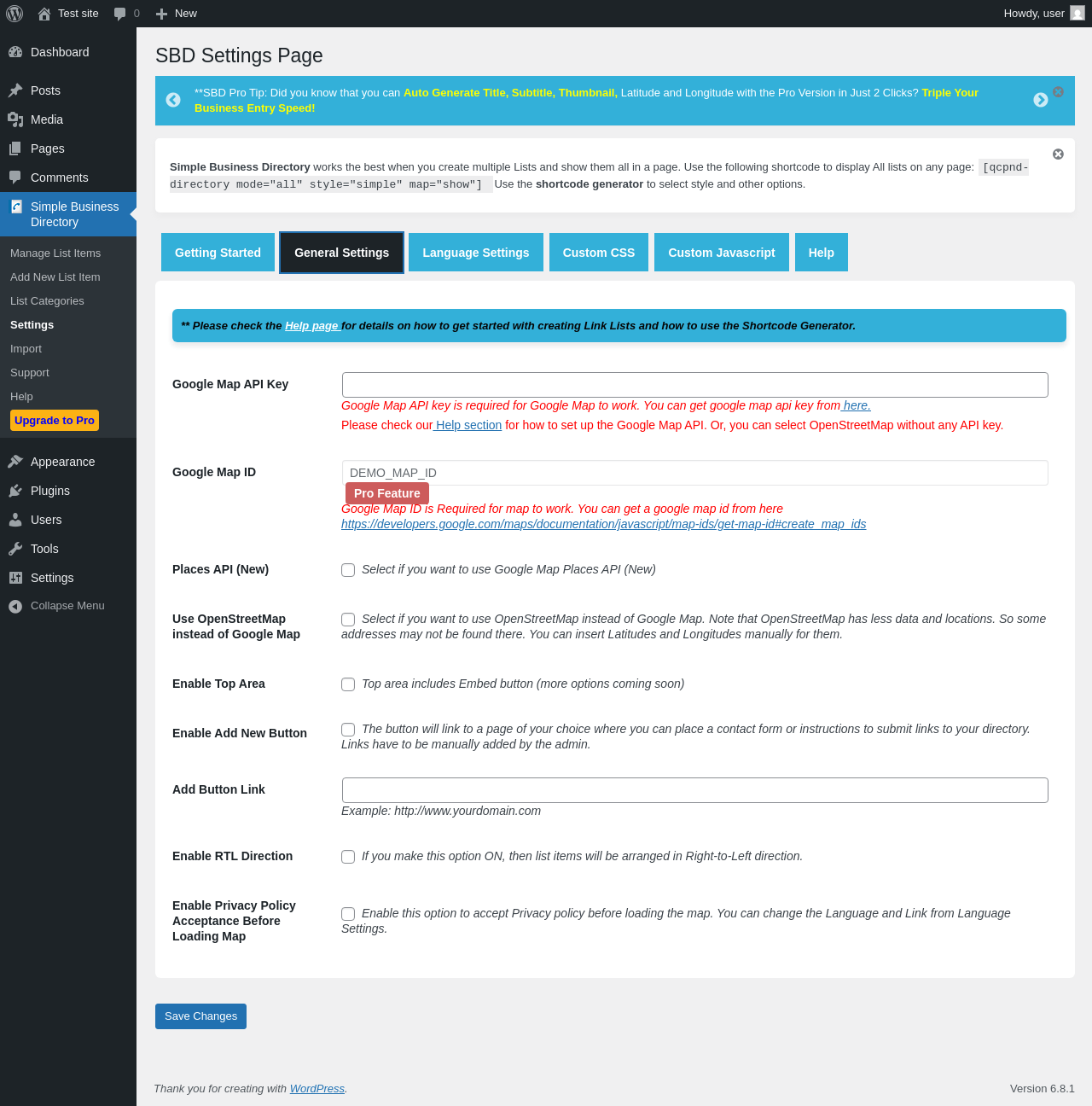 Does "Business Directory - Simple Business Directory" work with WordPress 6.8.1 and PHP 8.1.12? A smoke test was performed on .