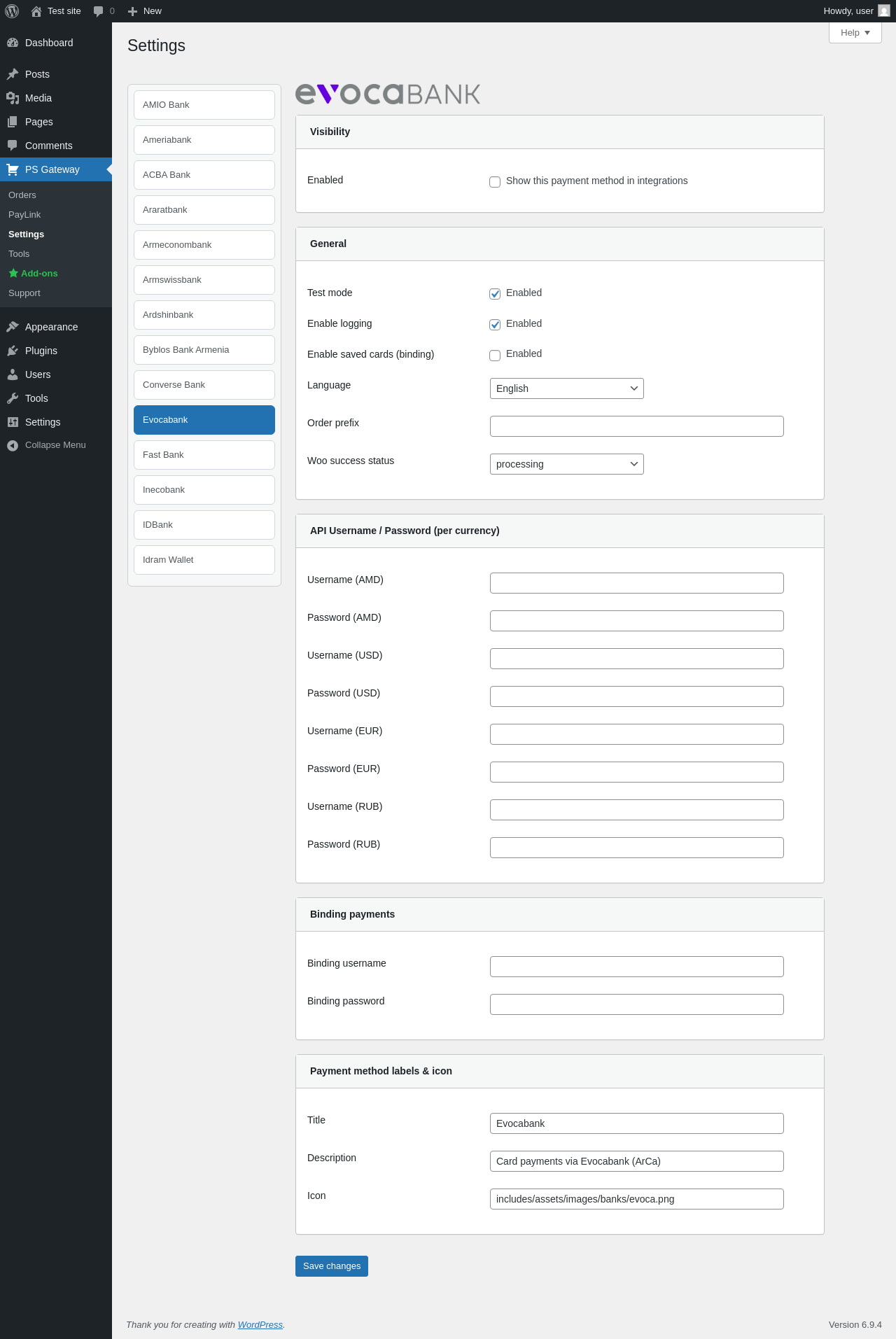| URL | /wp-admin/admin.php?page=pspg-settings&bank=arca_evoca |