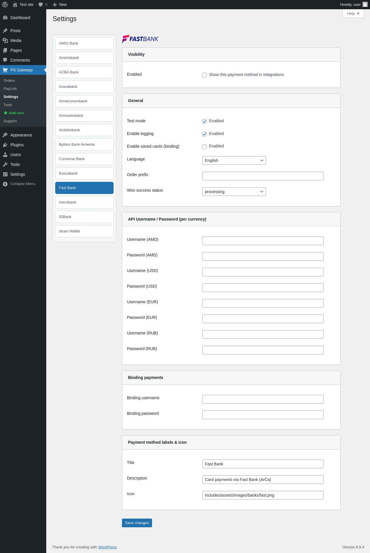 | URL | /wp-admin/admin.php?page=pspg-settings&bank=arca_fastbank |