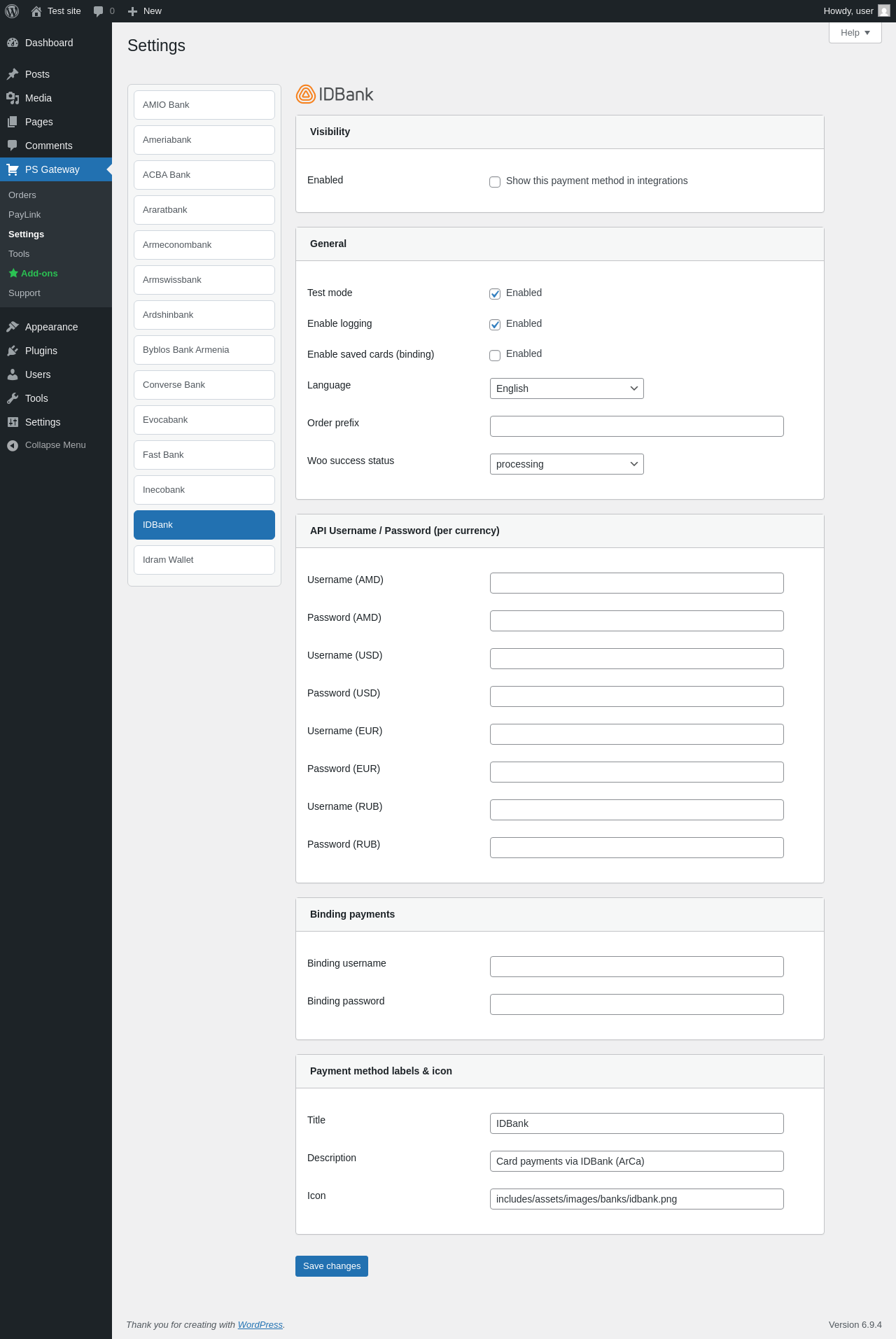 | URL | /wp-admin/admin.php?page=pspg-settings&bank=arca_idbank |
