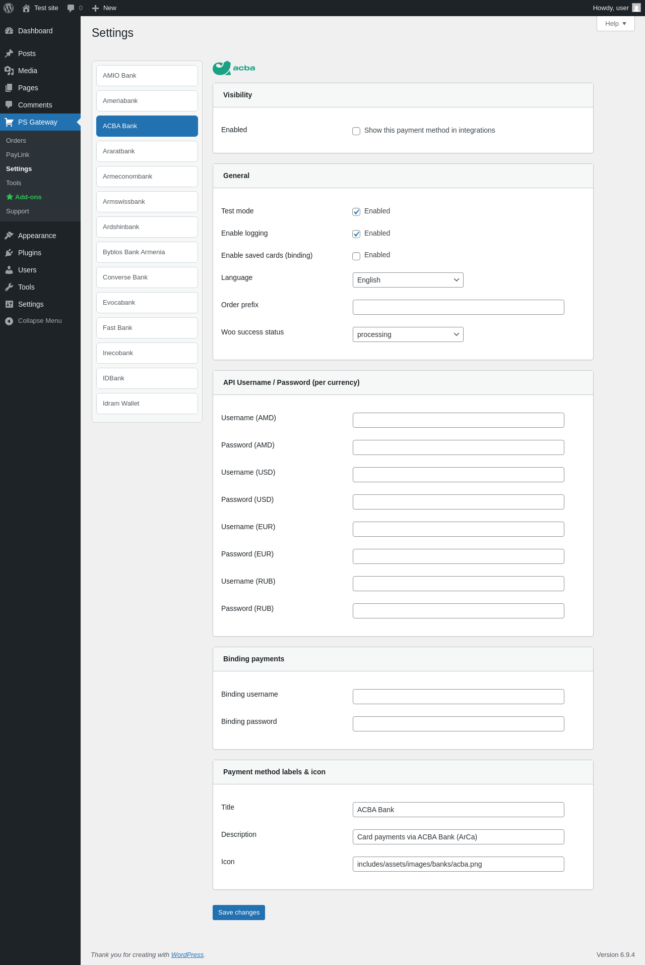 | URL | /wp-admin/admin.php?page=pspg-settings&bank=arca_acba |