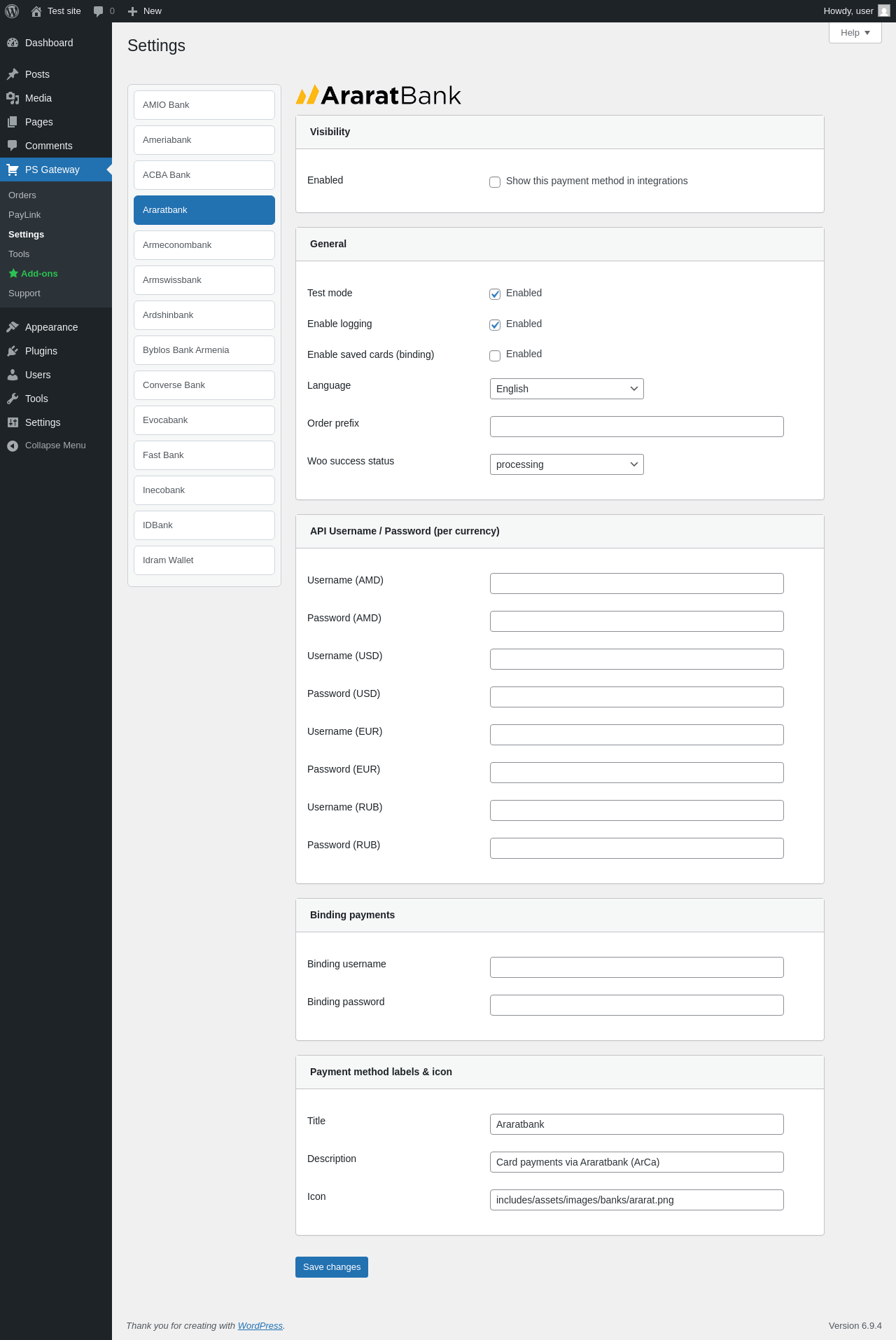 | URL | /wp-admin/admin.php?page=pspg-settings&bank=arca_ararat |