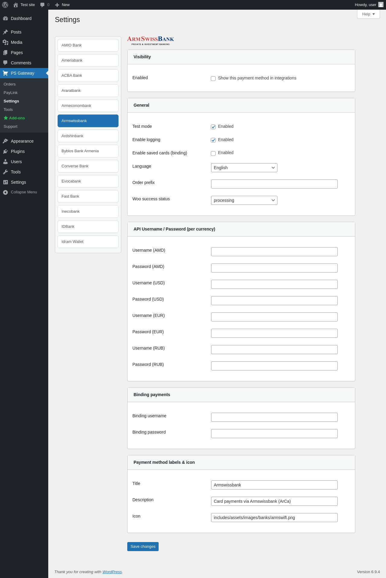| URL | /wp-admin/admin.php?page=pspg-settings&bank=arca_armeconombank |