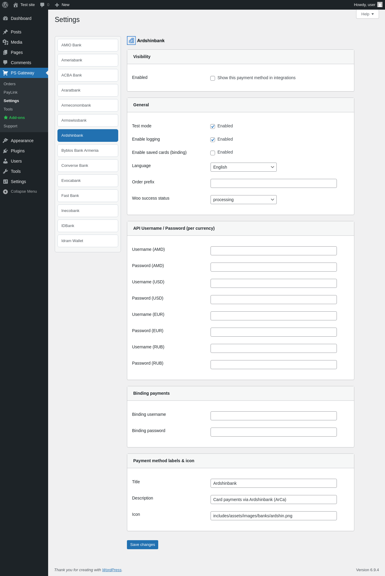 | URL | /wp-admin/admin.php?page=pspg-settings&bank=arca_ardshin |