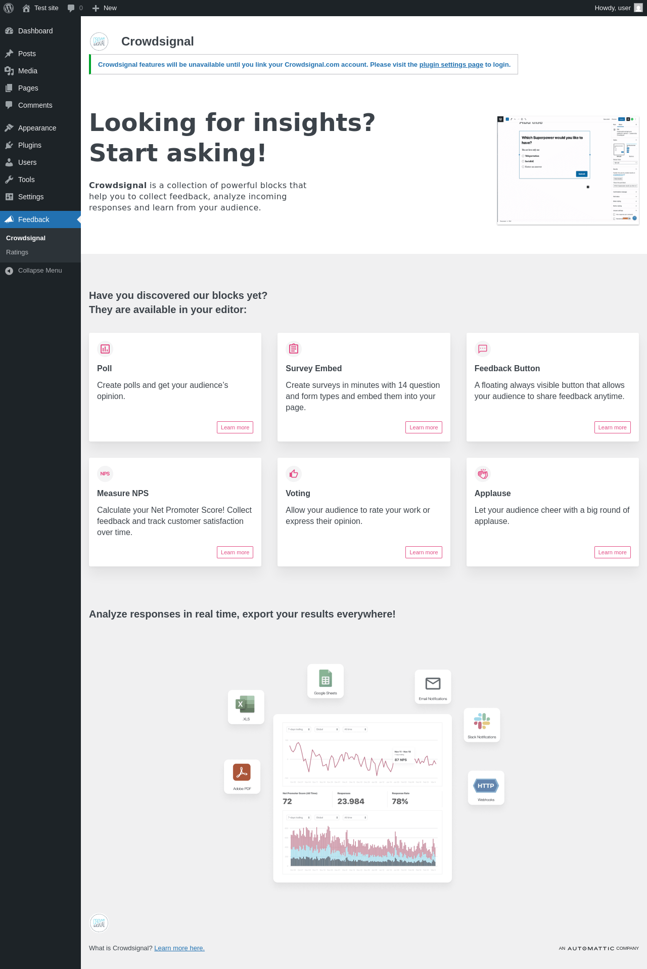 | URL | /wp-admin/options-general.php?page=crowdsignal-settings |