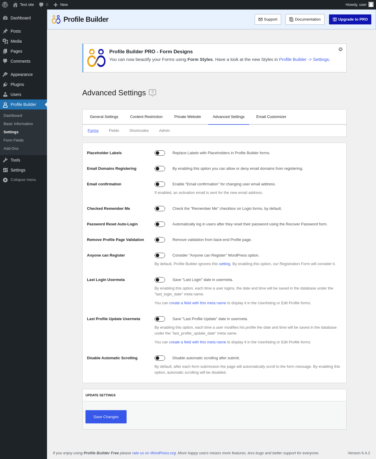 Profile Builder → Form Fields