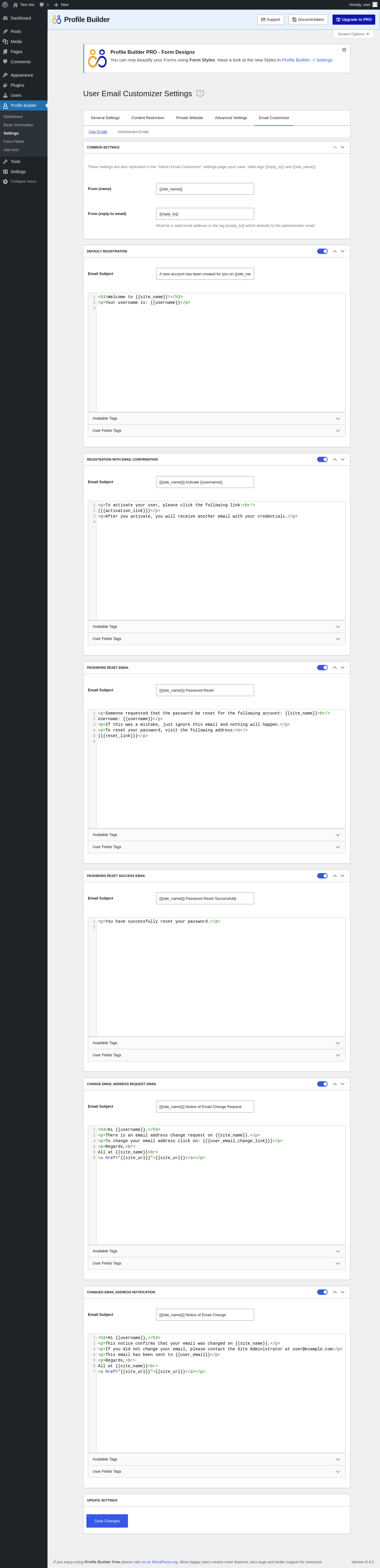 Profile Builder → User Email Customizer