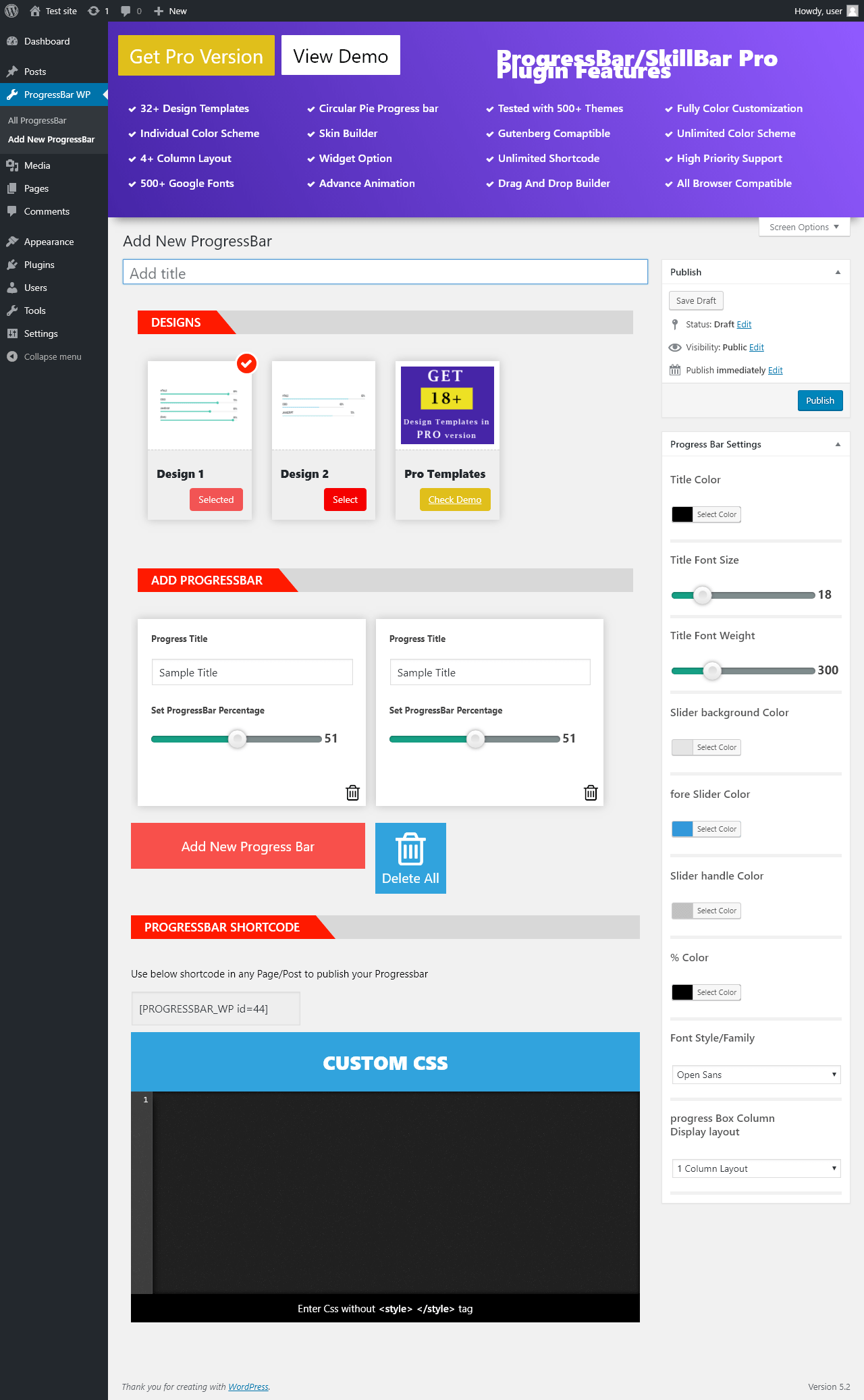 "title": "Progress Bar Shortcode",