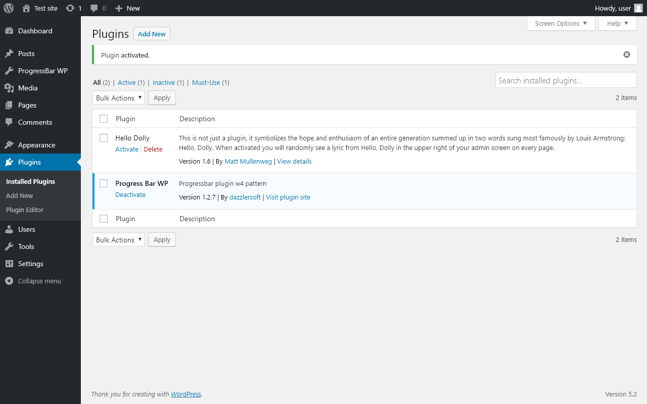Does Progress Bar WP work with WordPress 5.2 and PHP 7.0.16? A smoke test was performed on .