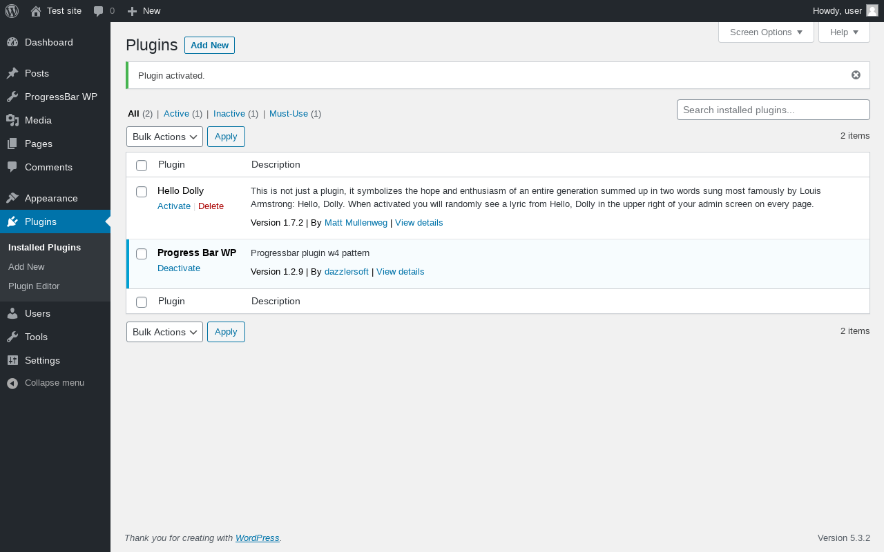 Does Progress Bar WP work with WordPress 5.3.2 and PHP 7.2.16? A smoke test was performed on .