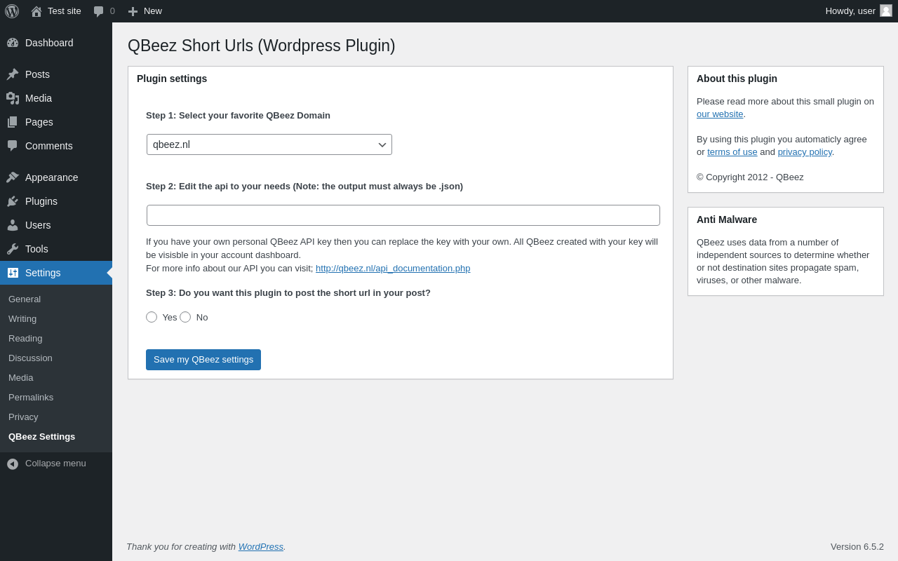 | URL | /wp-admin/options-general.php?page=qbeez_shorturl-settings |