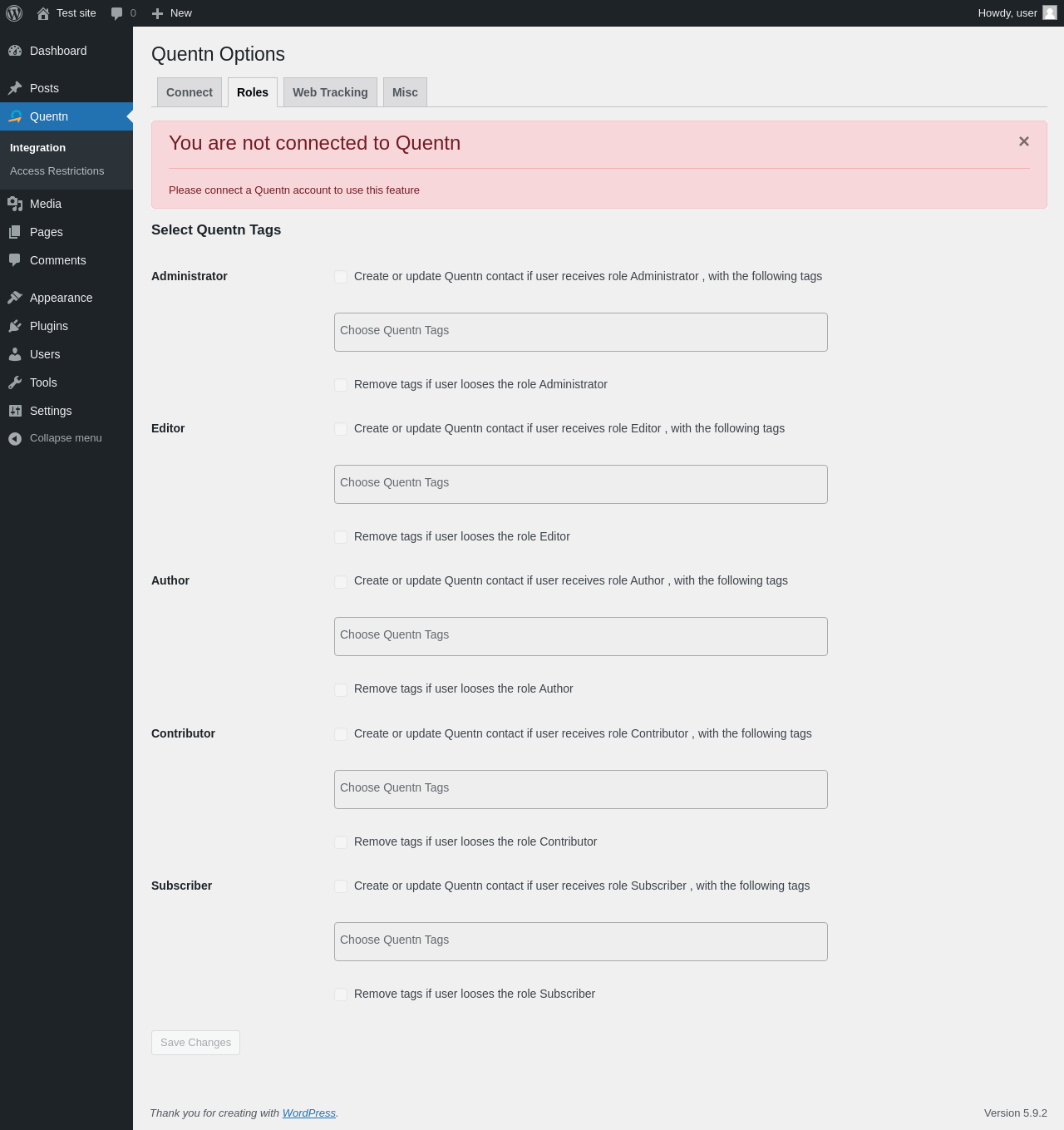 | URL | /wp-admin/admin.php?page=quentn-dashboard&tab=quentn_tags_selection |
