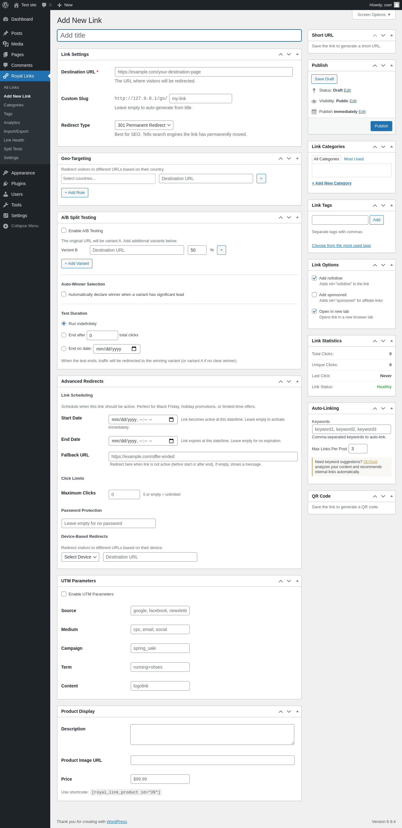 Royal Links → Add New Link