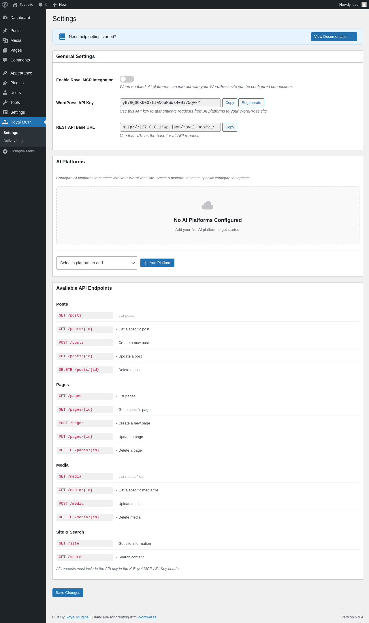 | URL | /wp-admin/admin.php?page=royal-mcp |