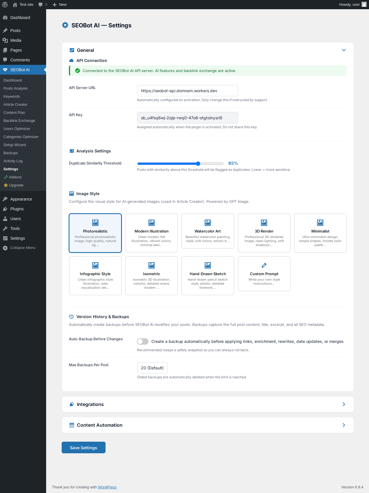| URL | /wp-admin/admin.php?page=wpseobot-settings |
