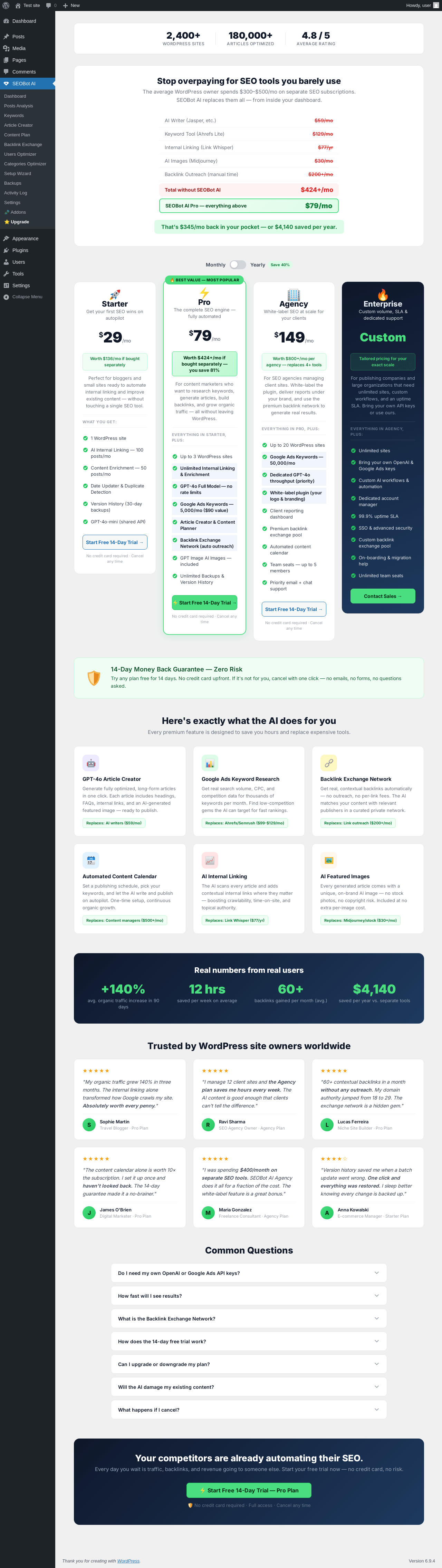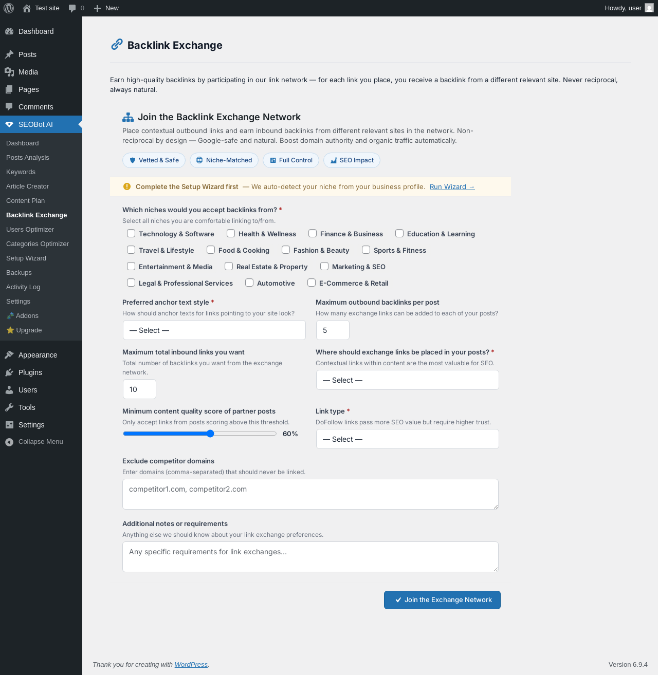 Does "SEOBot AI – SEO Automation, Content Optimizer & Internal Linking" work with WordPress 6.9.4 and PHP 8.1.12? A smoke test was performed on .