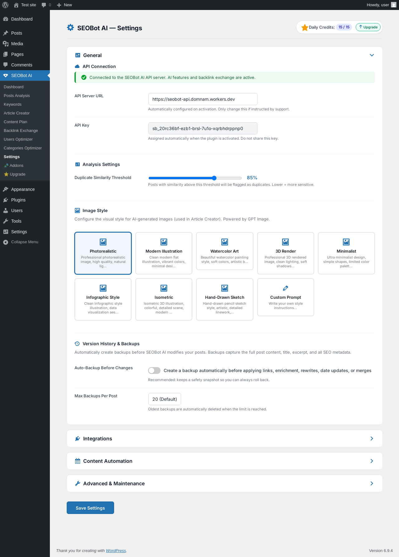 | URL | /wp-admin/admin.php?page=wpseobot-settings |