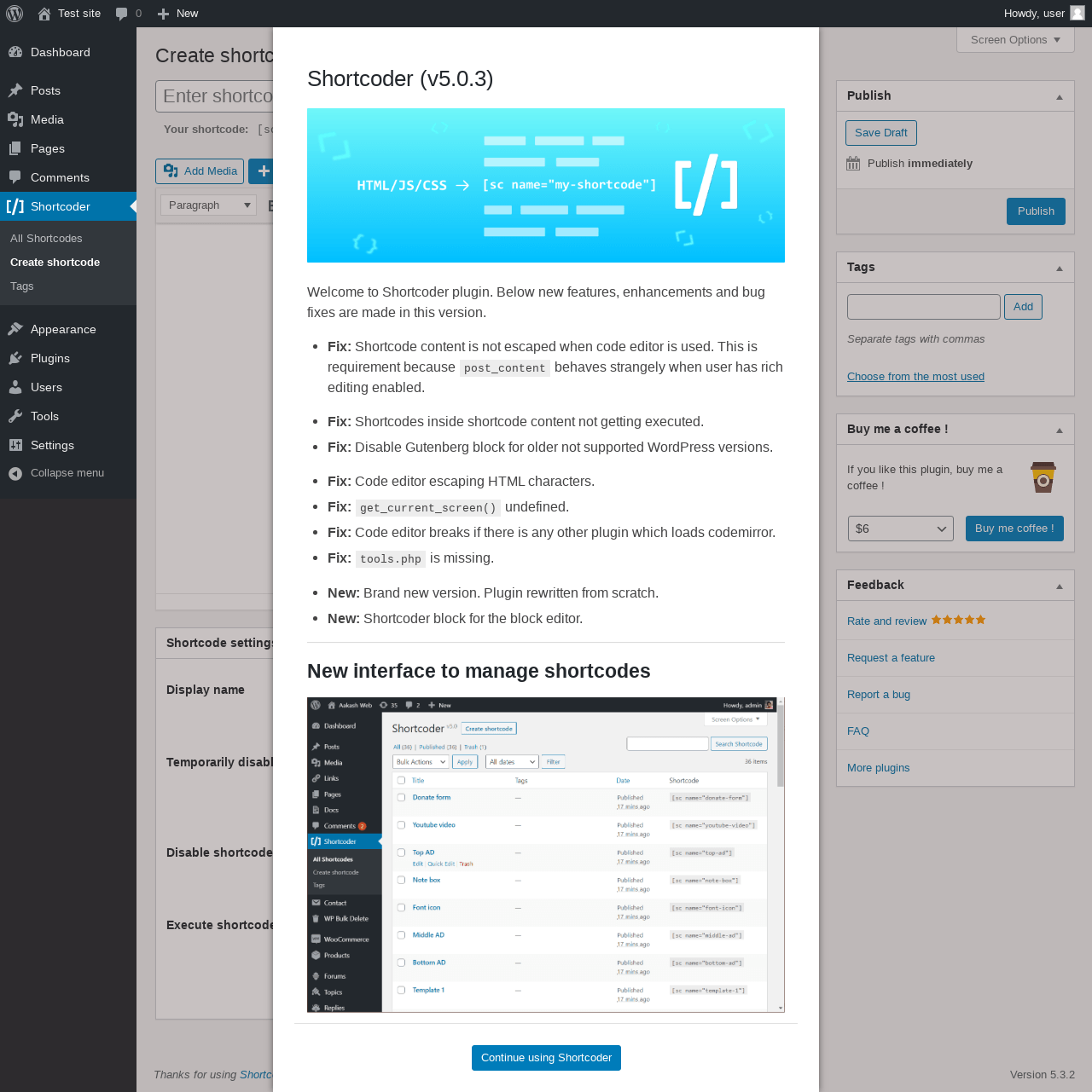 | WordPress.org page | https://wordpress.org/plugins/shortcoder/ |