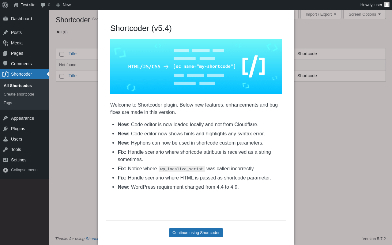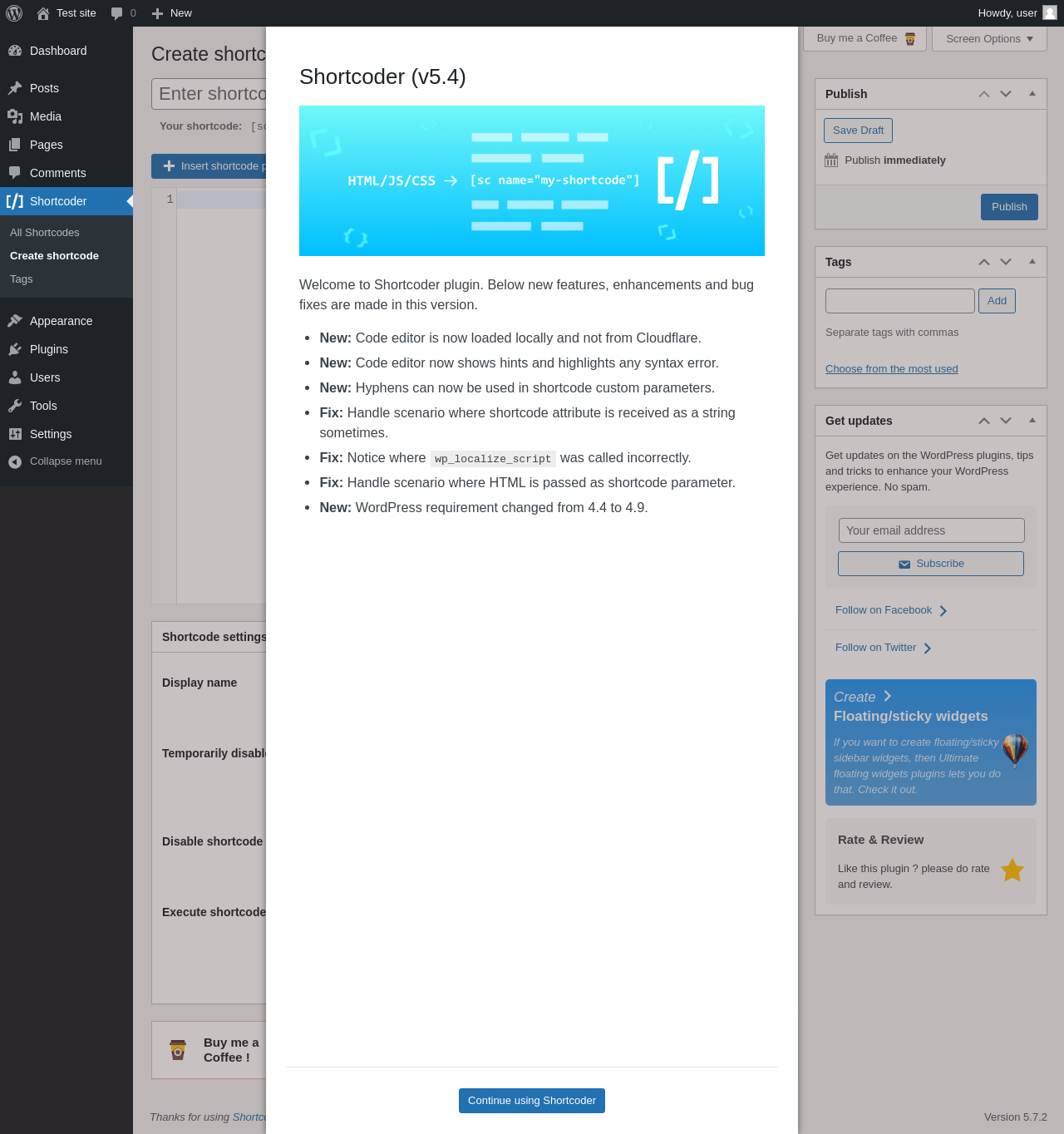 | WordPress.org page | https://wordpress.org/plugins/shortcoder/ |