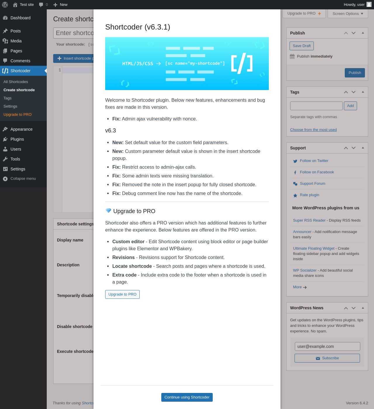 | WordPress.org page | https://wordpress.org/plugins/shortcoder/ |
