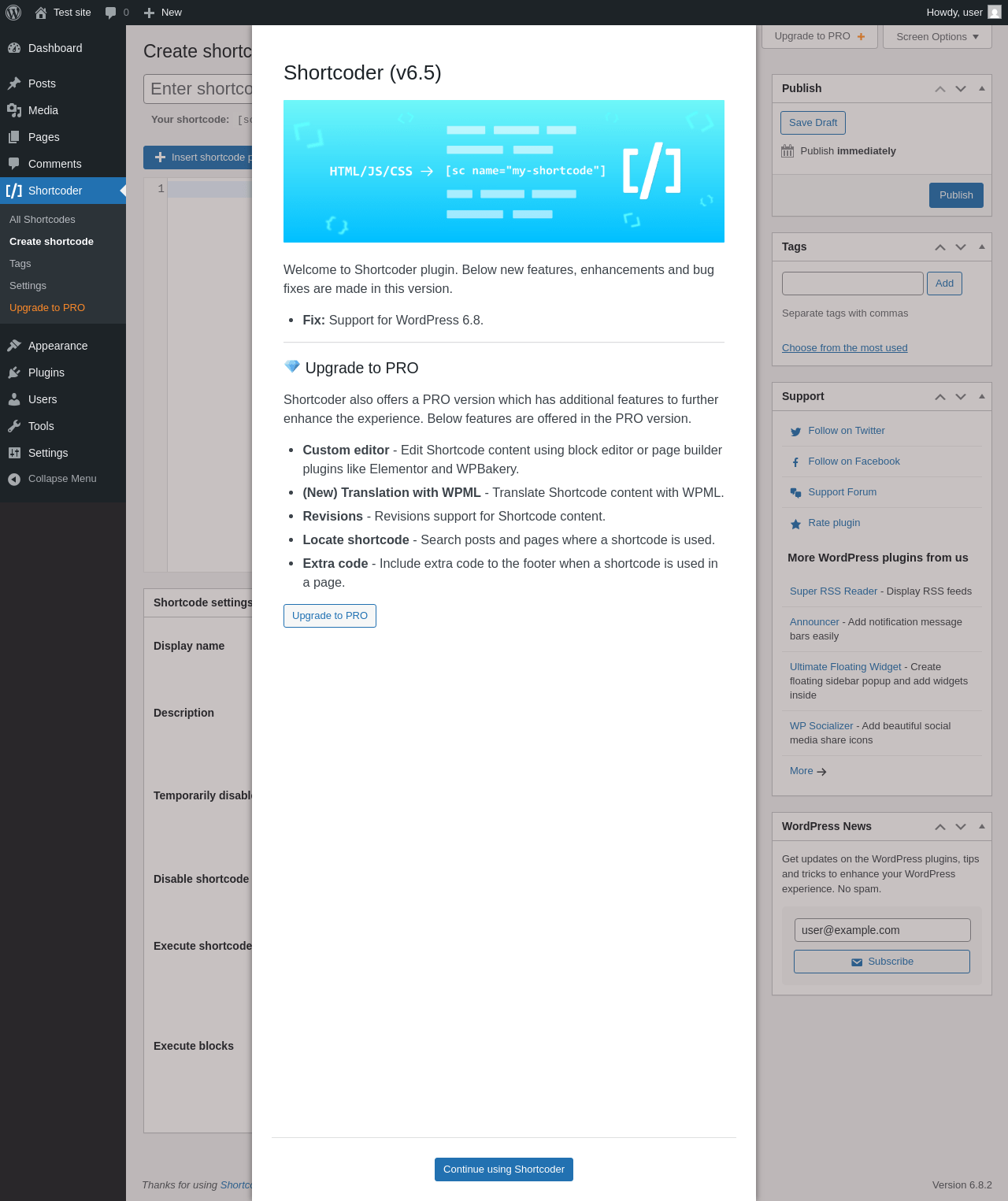 | WordPress.org page | https://wordpress.org/plugins/shortcoder/ |