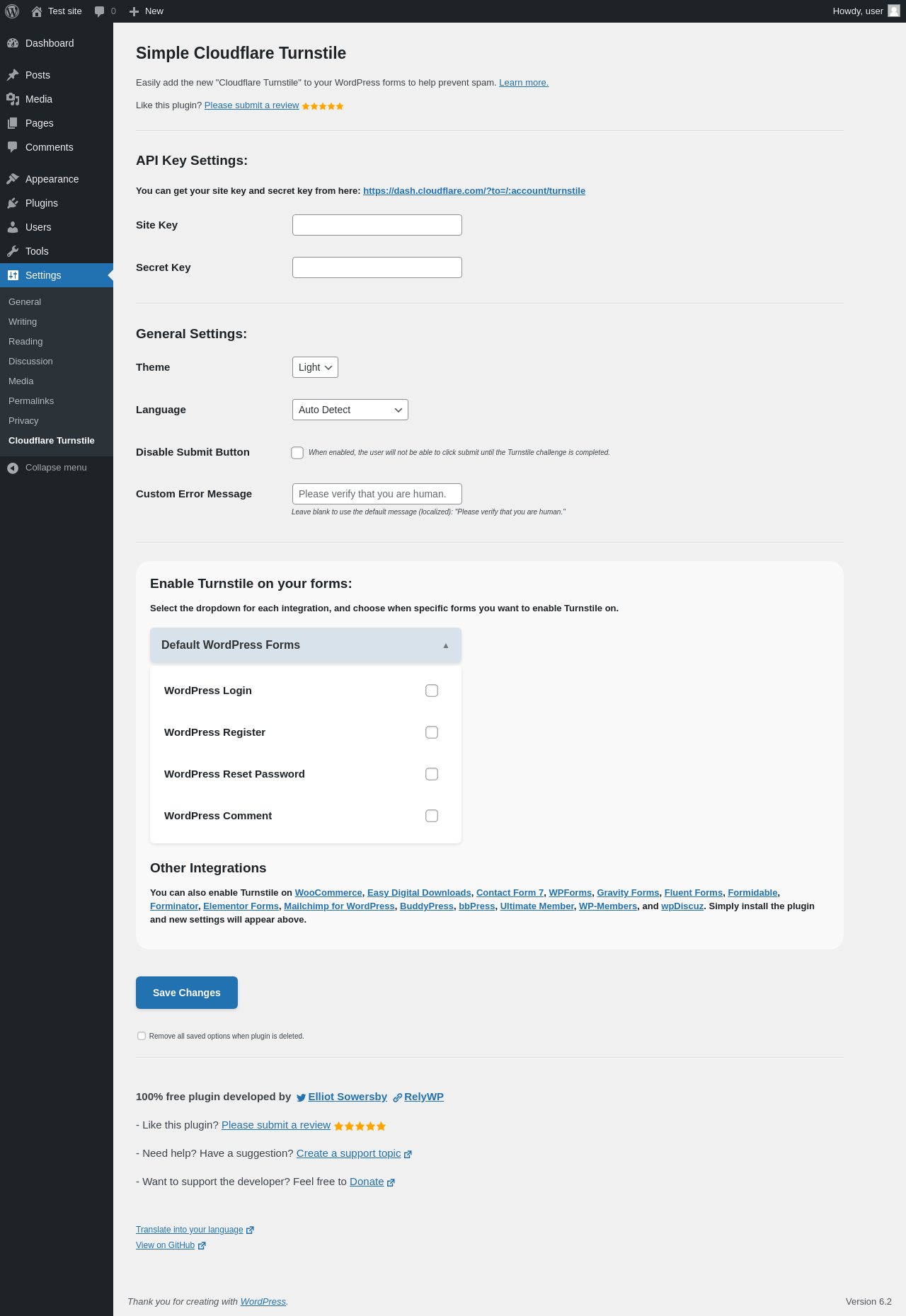 | URL | /wp-admin/options-general.php?page=cfturnstile |