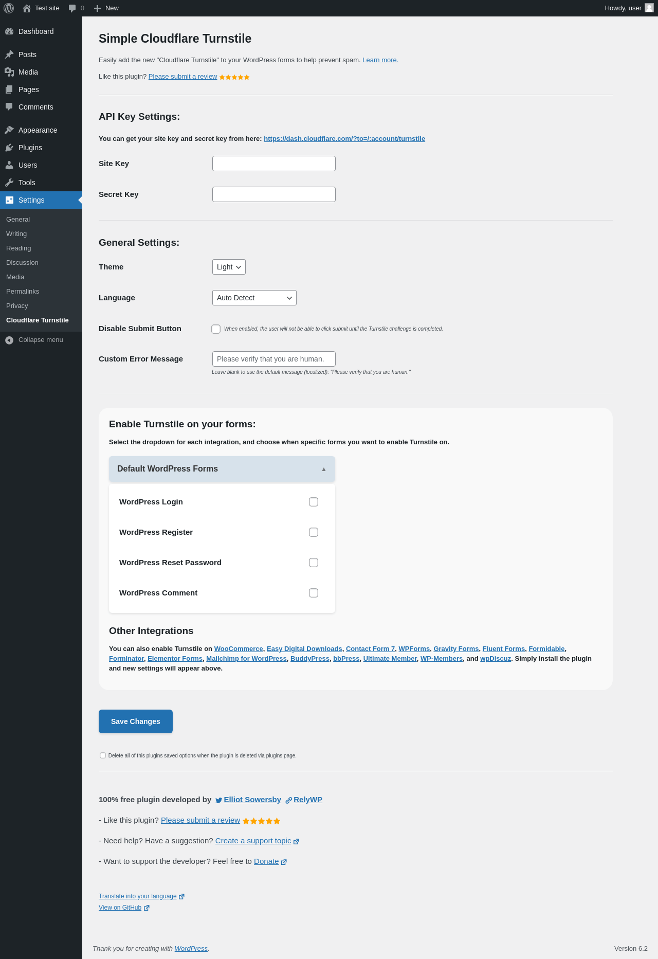 Does Simple Cloudflare Turnstile work with WordPress 6.2 and PHP 8.1.12? A smoke test was performed on .