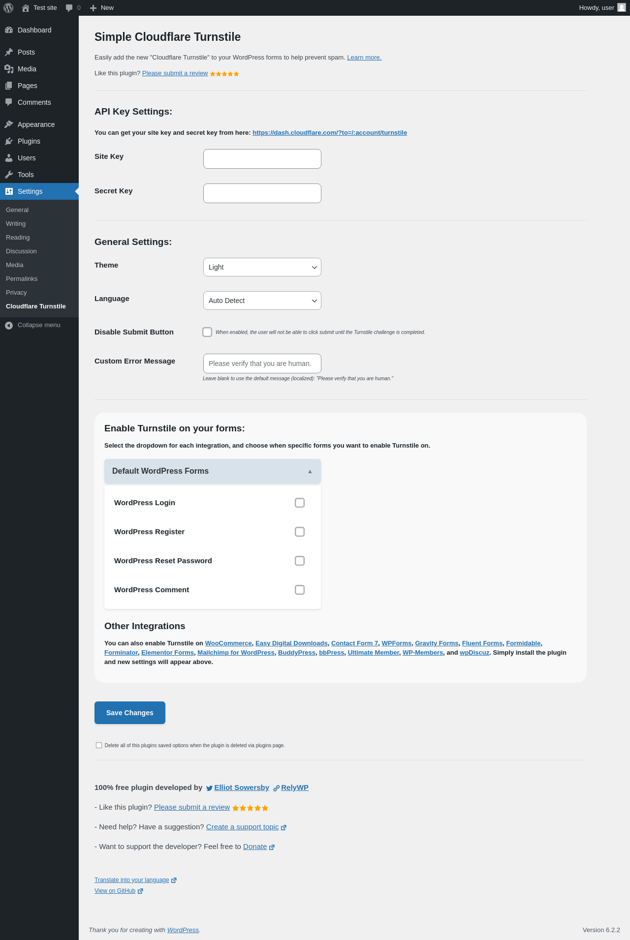 Does Simple Cloudflare Turnstile work with WordPress 6.2.2 and PHP 8.1.12? A smoke test was performed on .