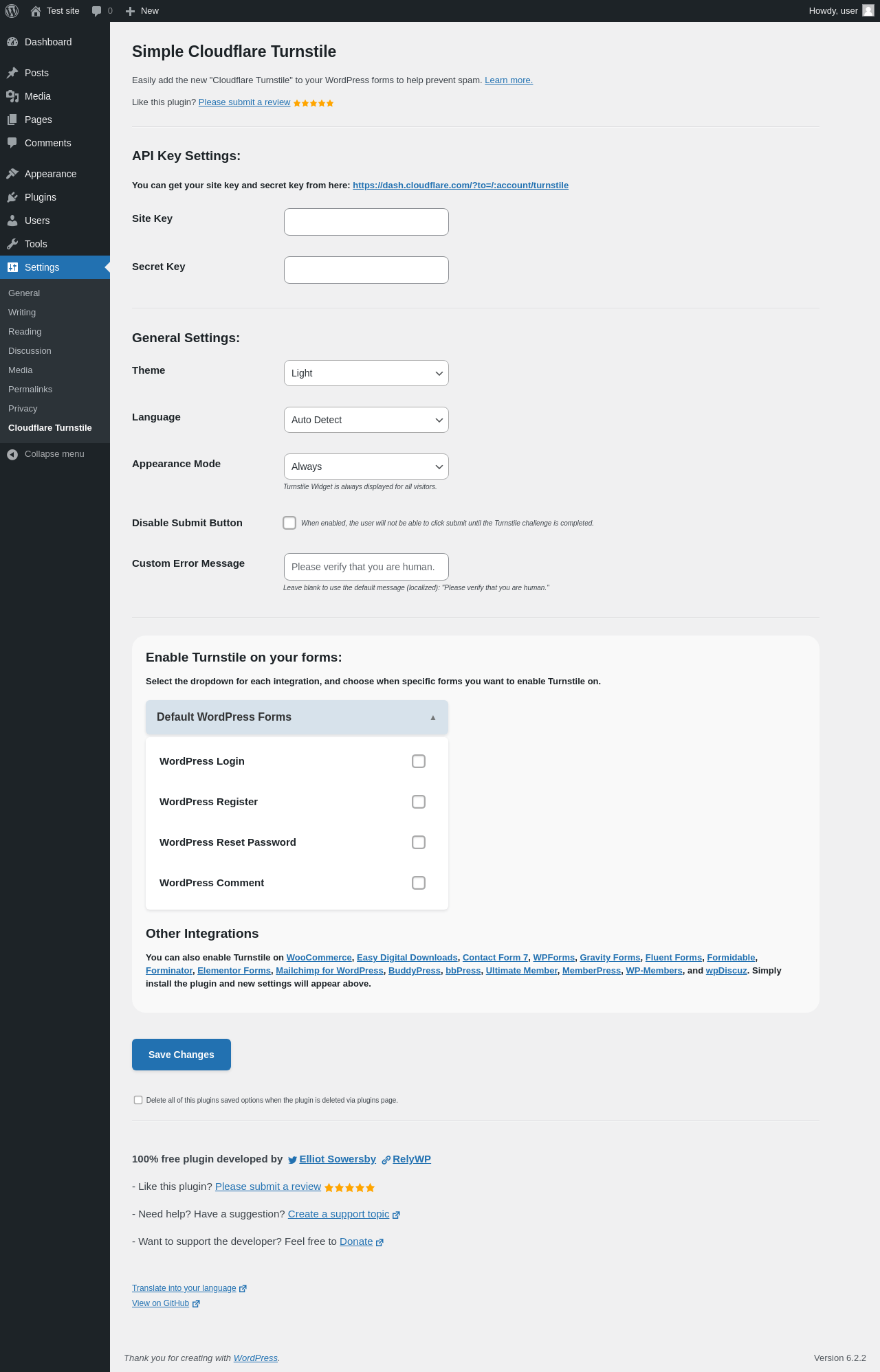 Does Simple Cloudflare Turnstile work with WordPress 6.2.2 and PHP 8.1.12? A smoke test was performed on .