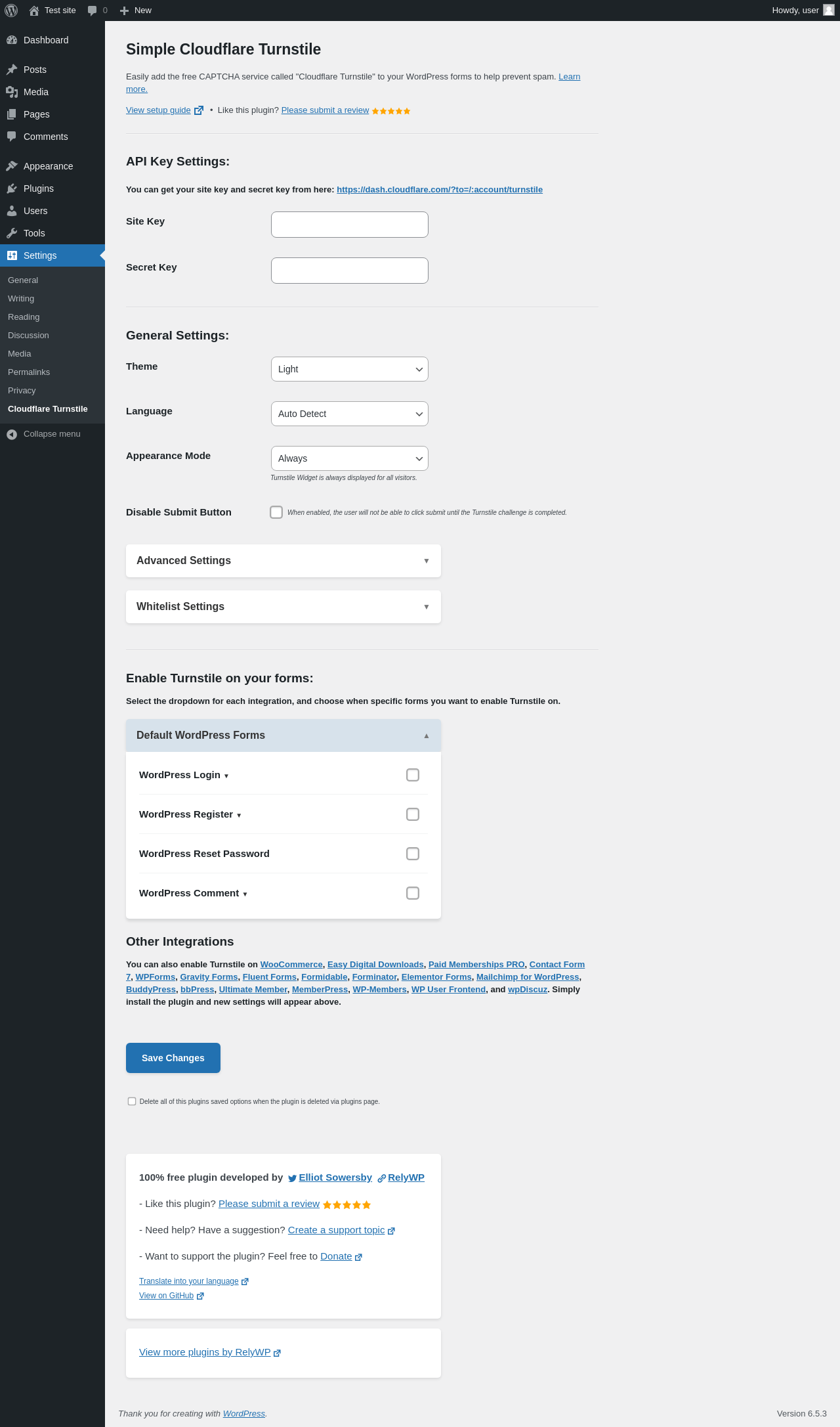 | URL | /wp-admin/options-general.php?page=cfturnstile |