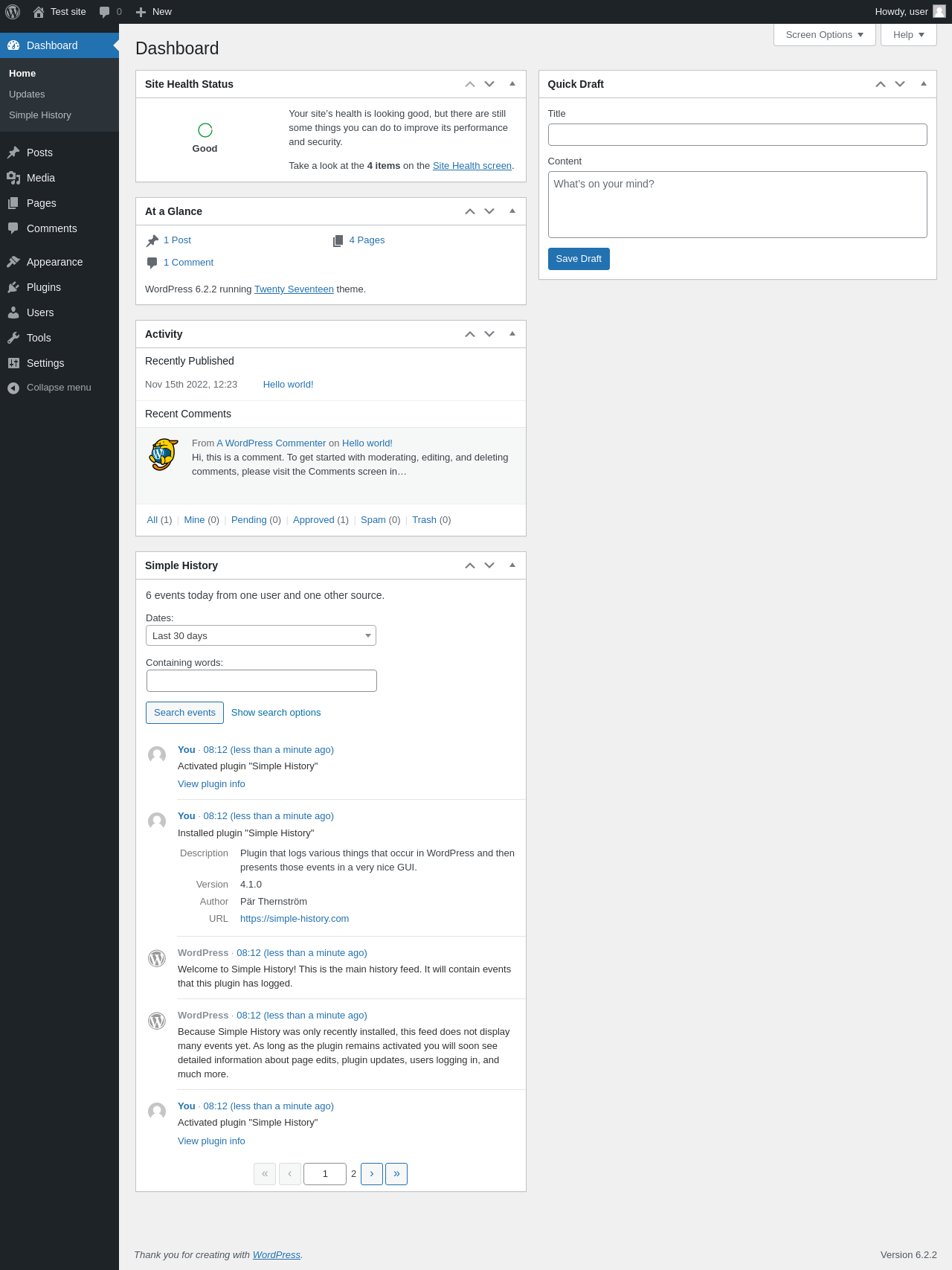 Does Simple History work with WordPress 6.2.2 and PHP 8.1.12? A smoke test was performed on .