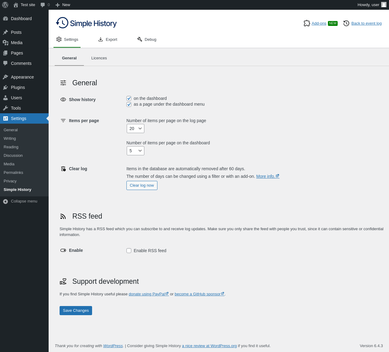 WordPress.org page | https://wordpress.org/plugins/simple-history/ |