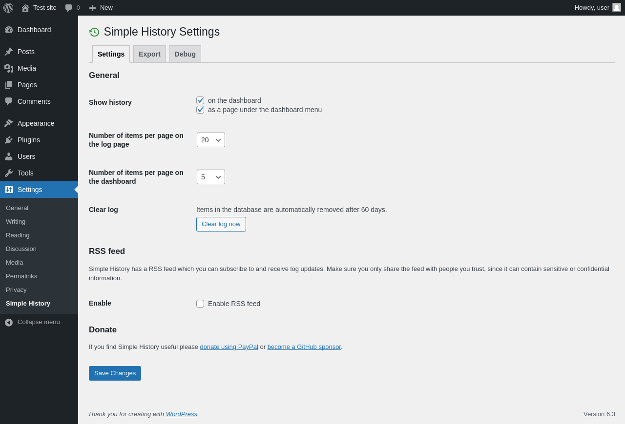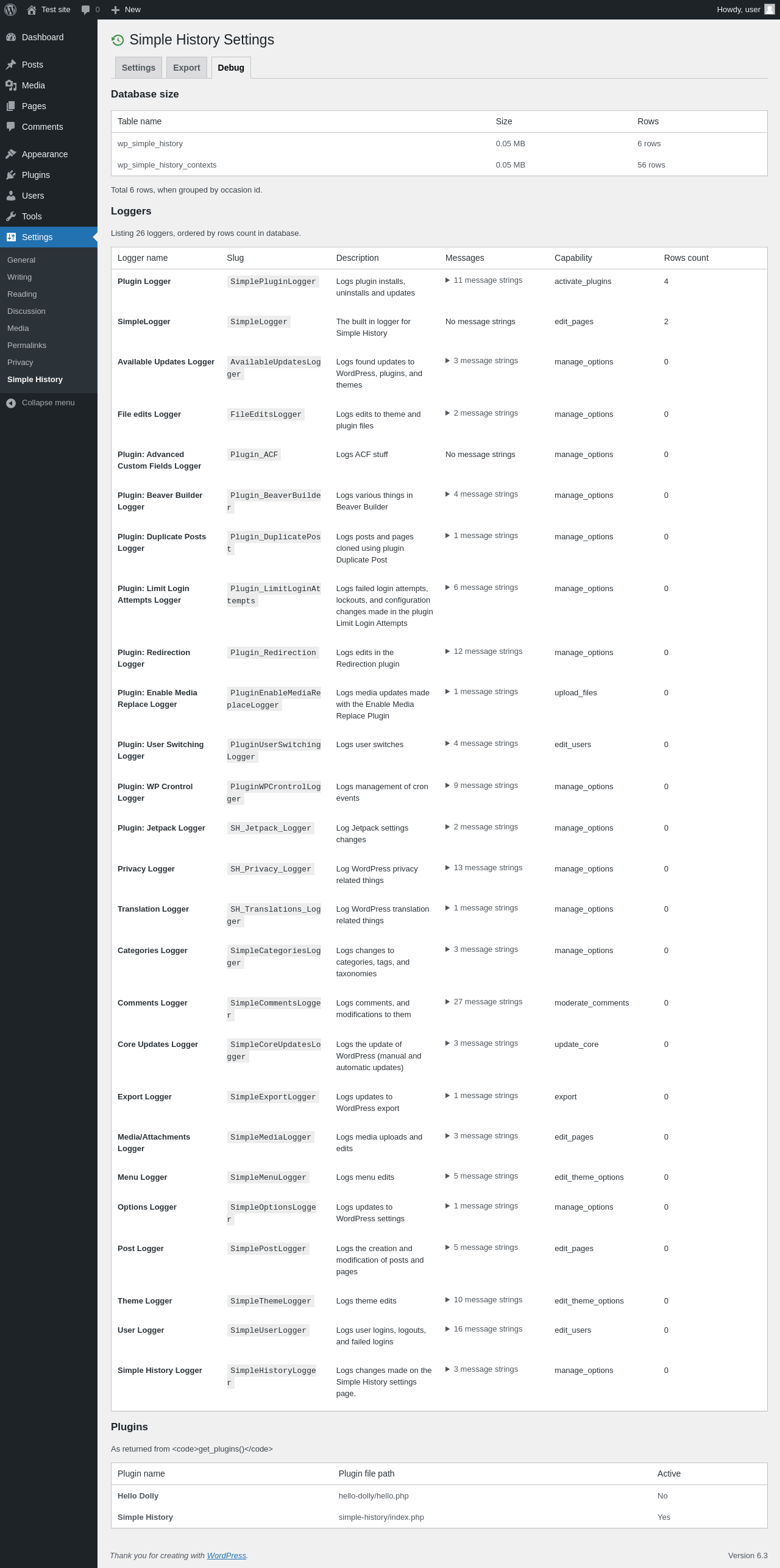 URL | /wp-admin/options-general.php?page=simple_history_settings_menu_slug&selected-tab=debug |