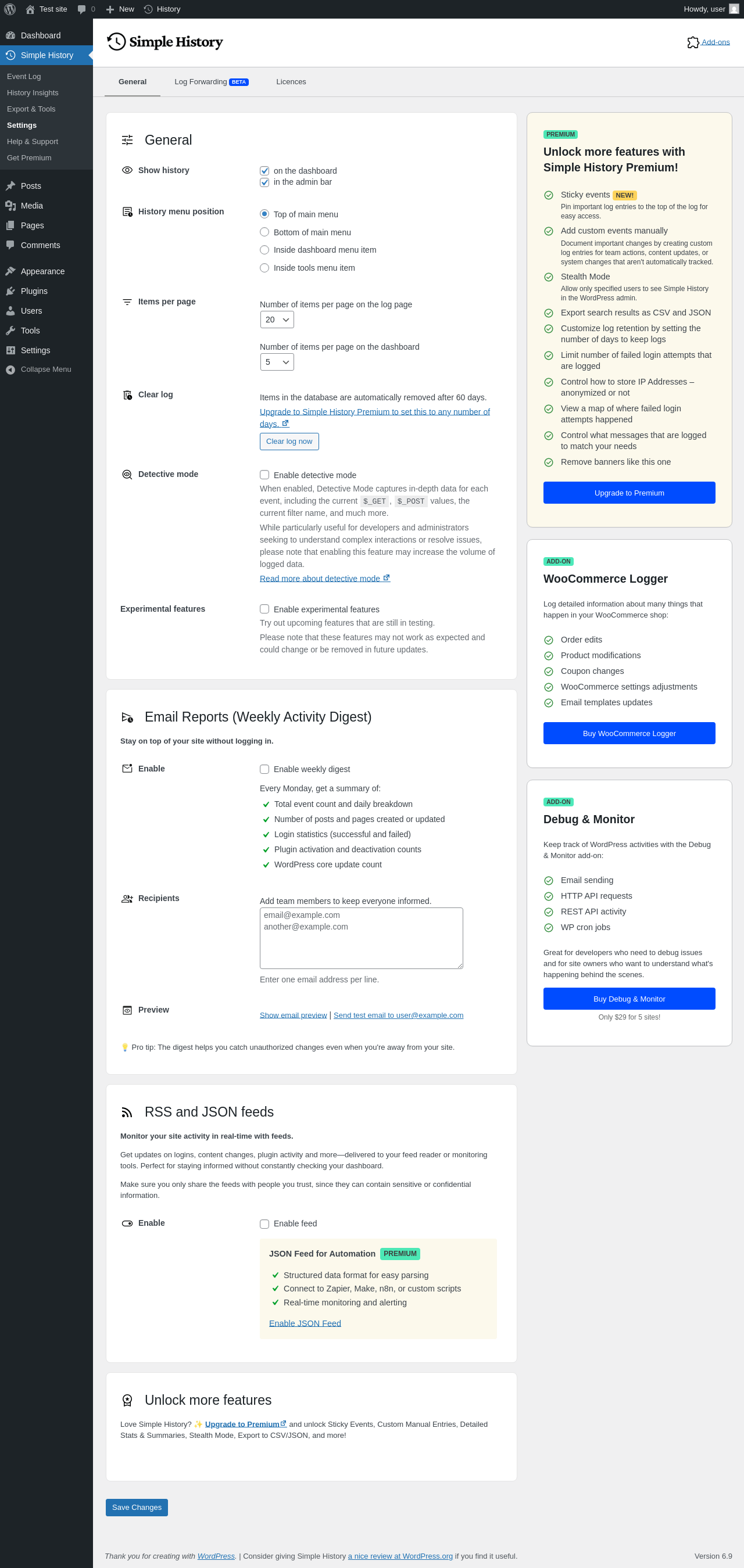 | URL | /wp-admin/admin.php?page=simple_history_help_support&selected-tab=simple_history_help_support_general&selected-sub-tab=simple_history_help_support_general |
