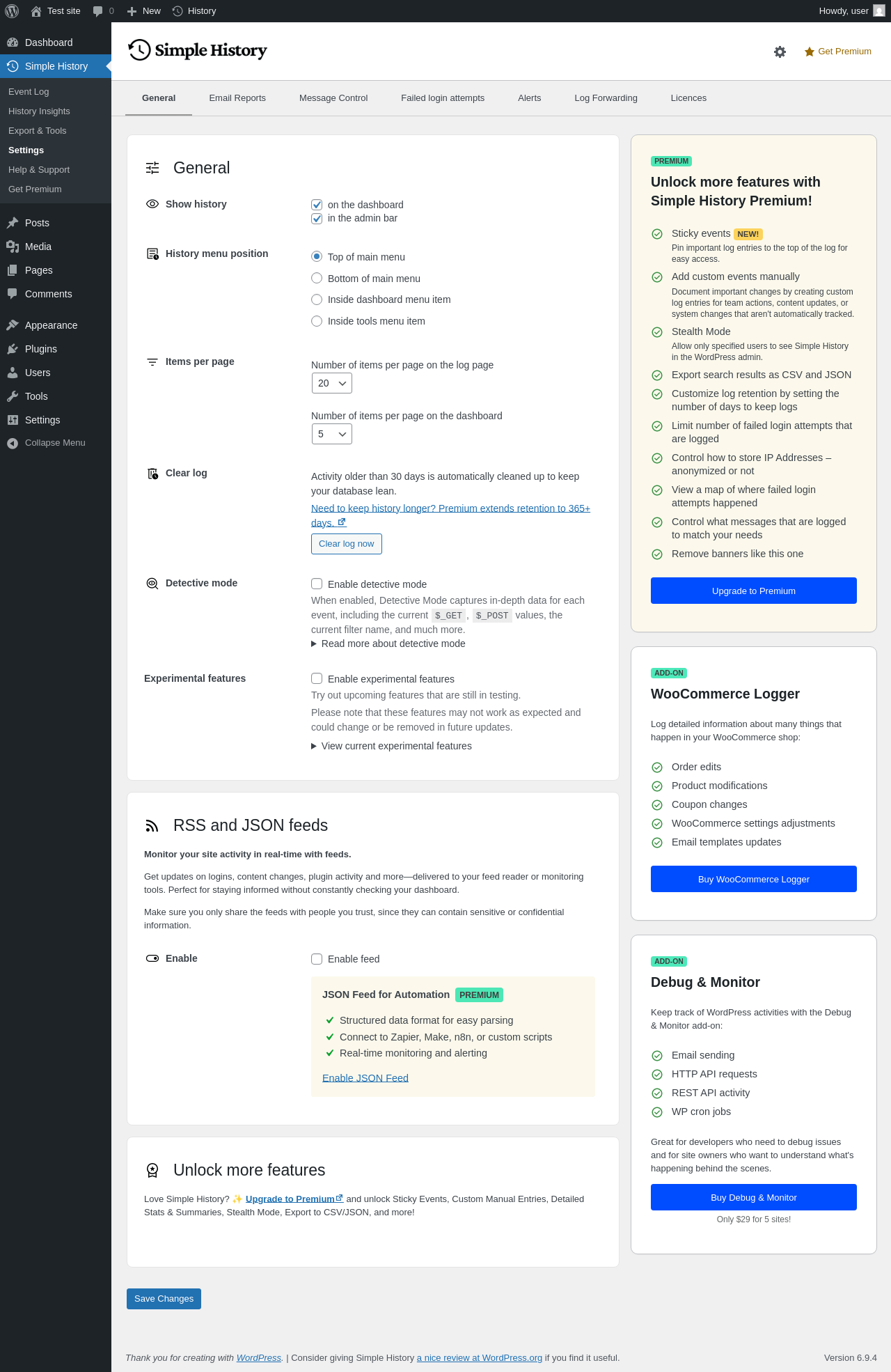 | URL | /wp-admin/admin.php?page=simple_history_help_support&selected-tab=simple_history_help_support_general&selected-sub-tab=simple_history_help_support_general |