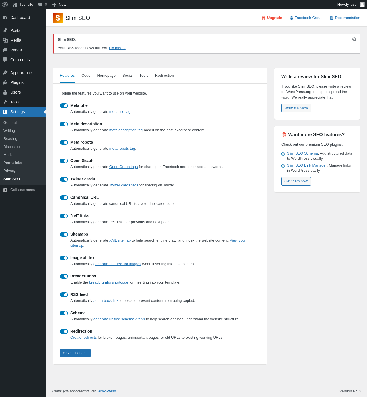 | URL | /wp-admin/options-general.php?page=slim-seo |