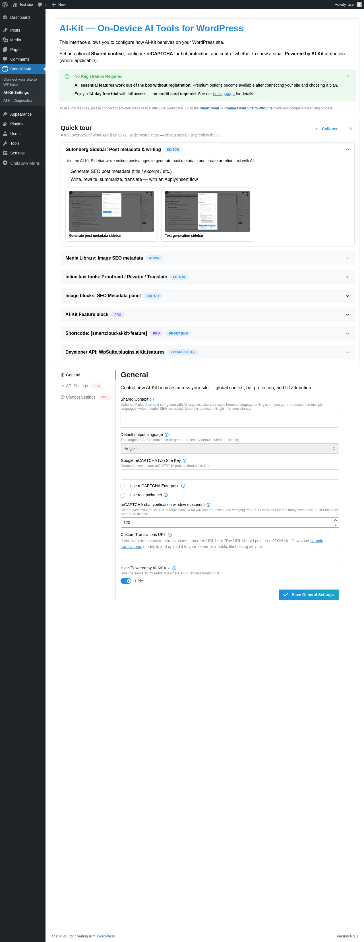 | URL | /wp-admin/admin.php?page=smartcloud-ai-kit |