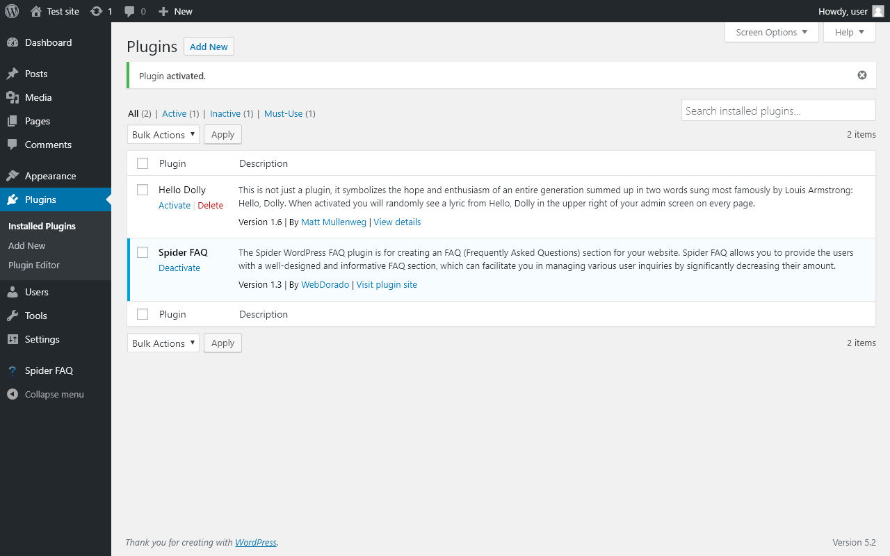 Does Spider FAQ work with WordPress 5.2 and PHP 7.0.16? A smoke test was performed on .