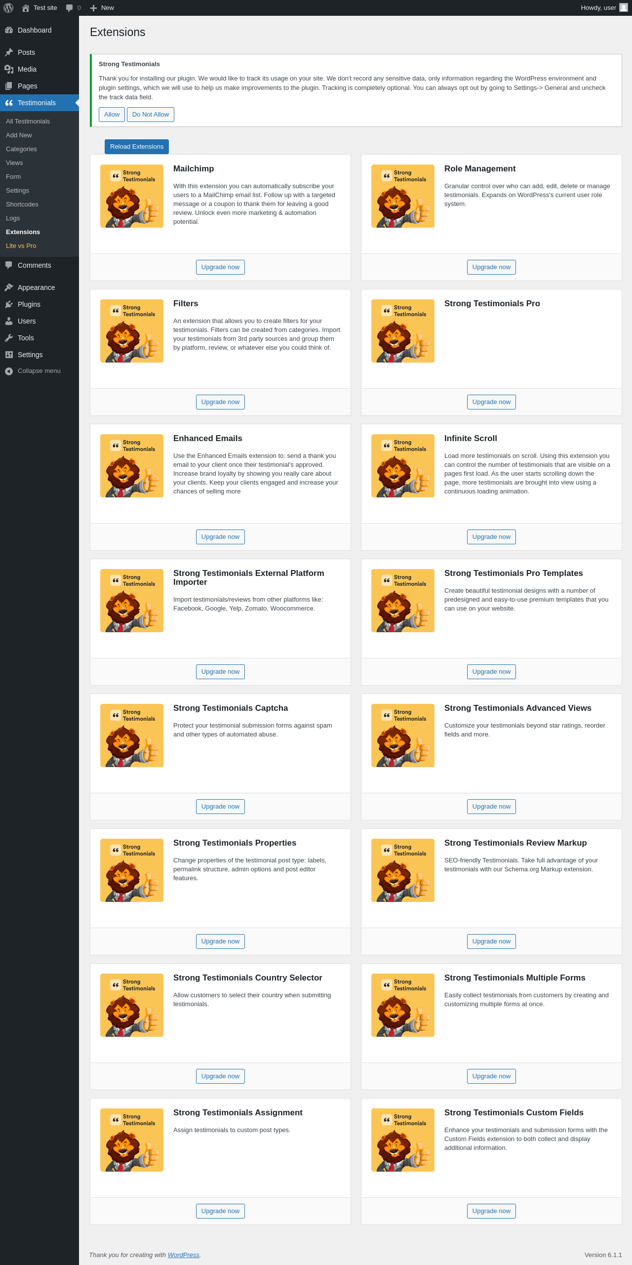 | URL | /wp-admin/edit.php?post_type=wpm-testimonial&page=strong-testimonials-addons |