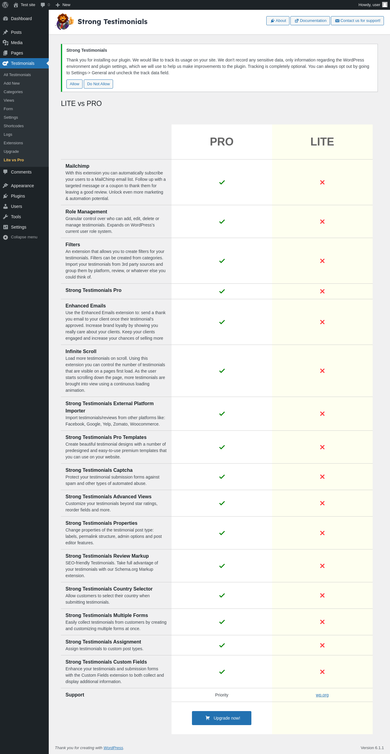 | URL | /wp-admin/edit.php?post_type=wpm-testimonial&page=strong-testimonials-lite-vs-pro |