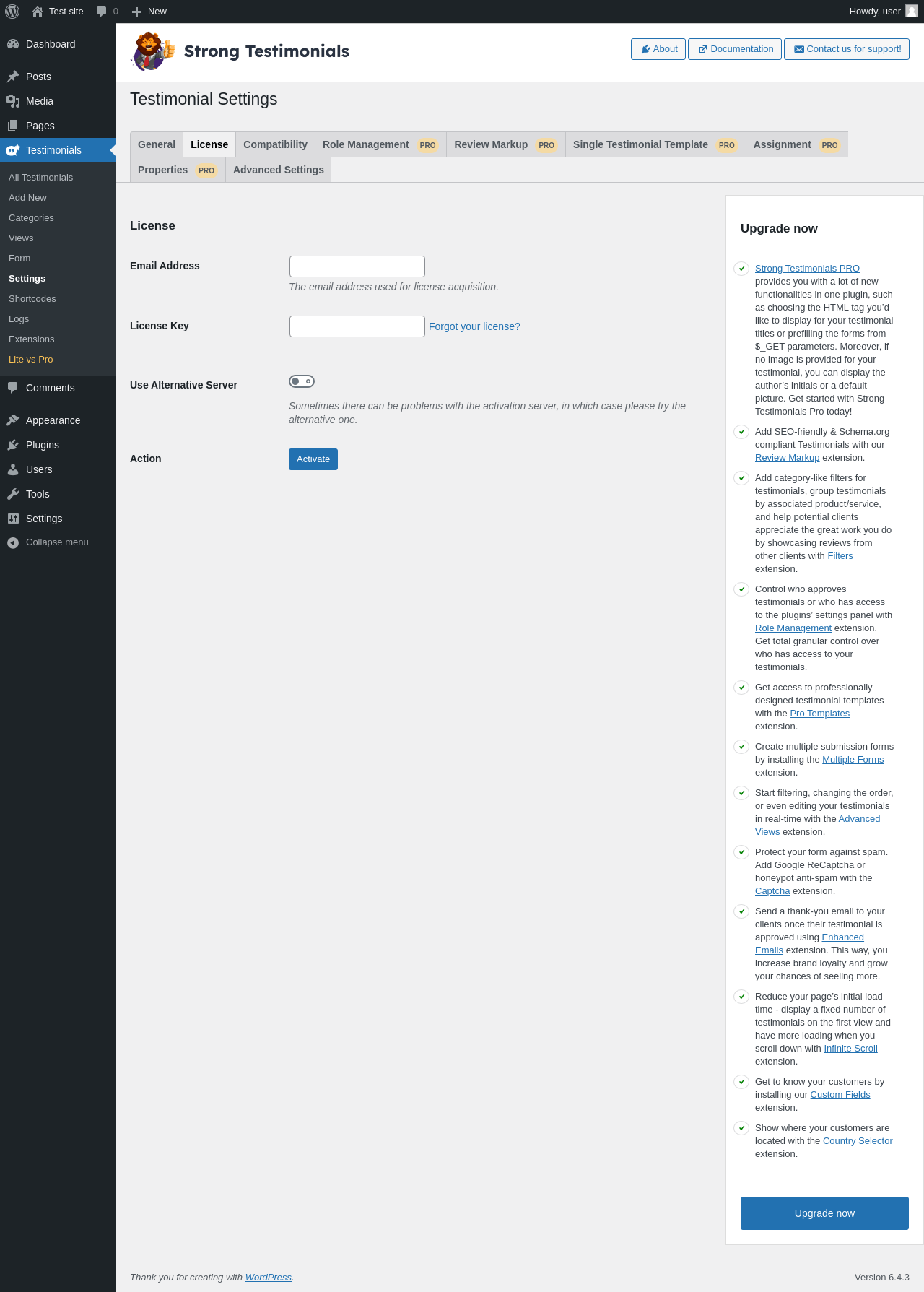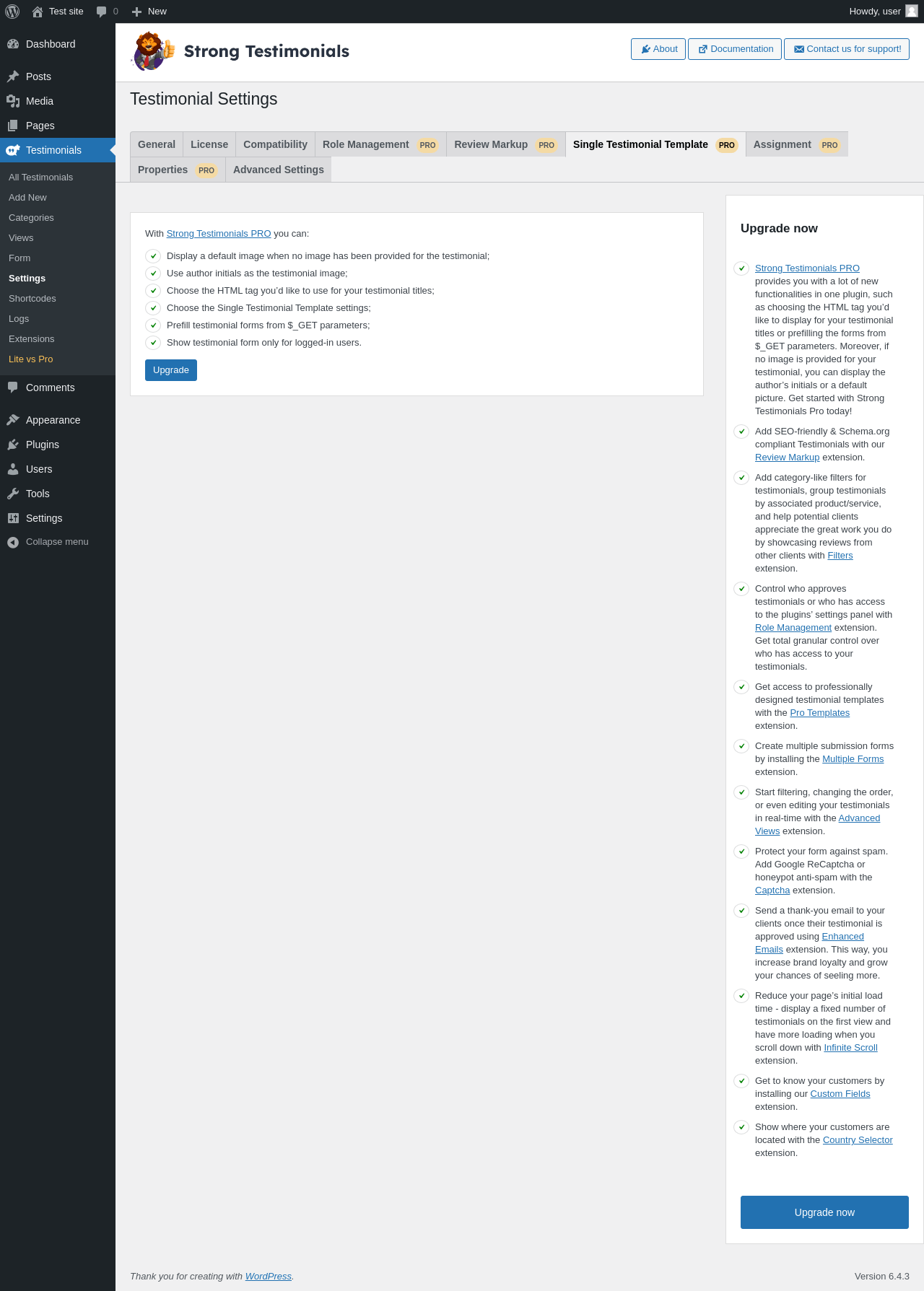 | URL | /wp-admin/edit.php?post_type=wpm-testimonial&page=strong-testimonials-lite-vs-pro |