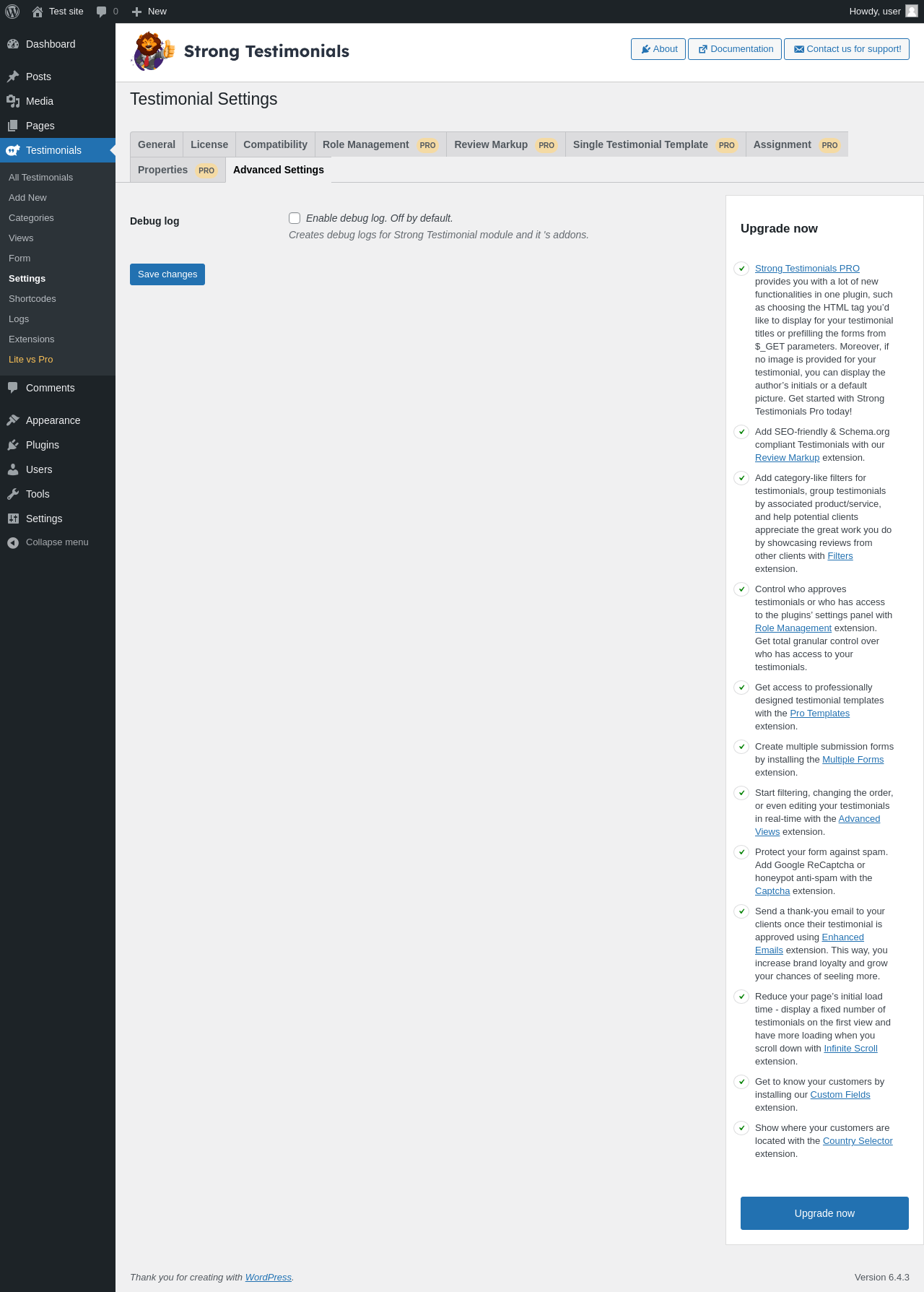 | URL | /wp-admin/edit.php?post_type=wpm-testimonial&page=strong-testimonials-logs |
