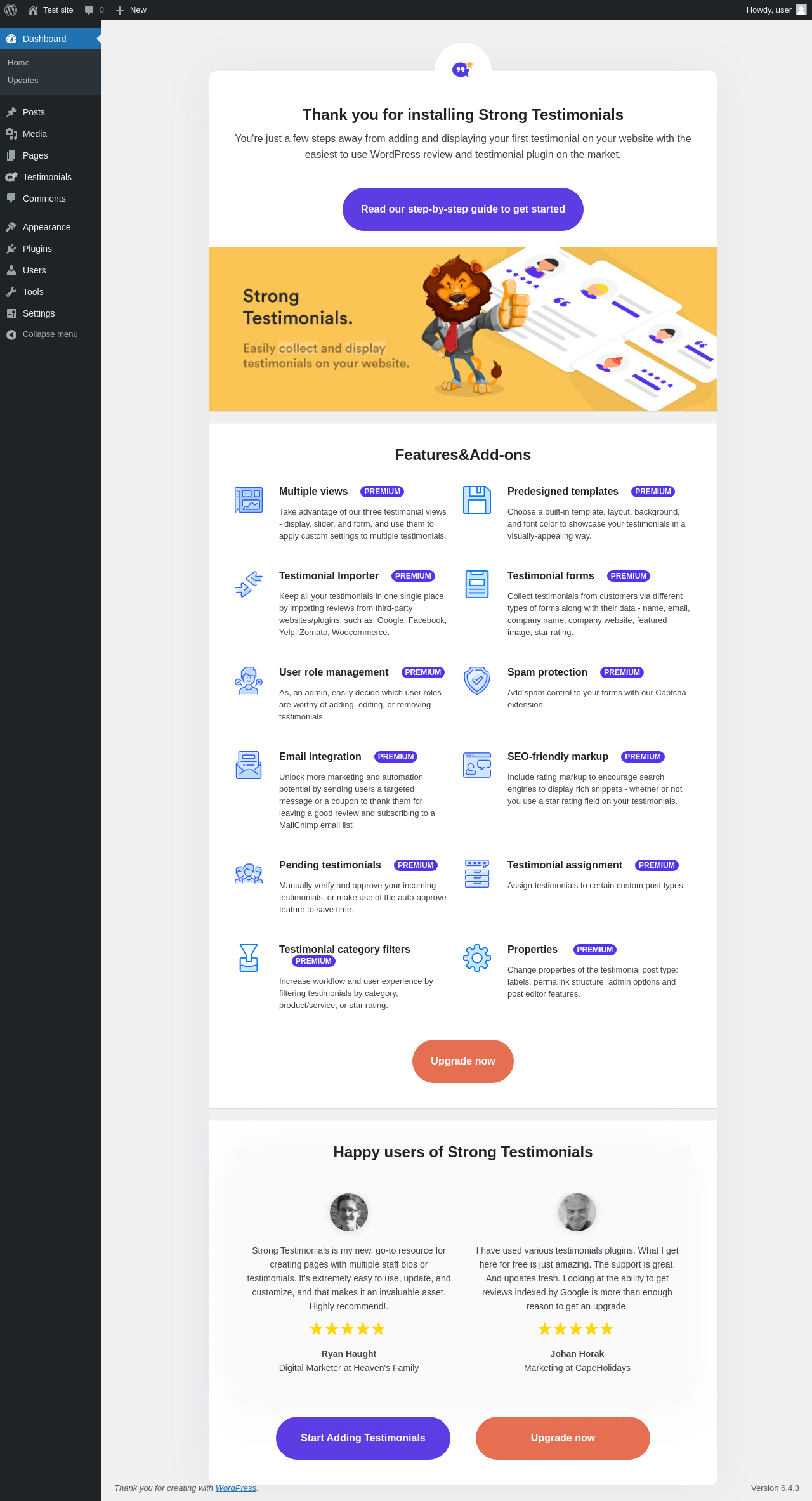 | URL | /wp-admin/edit.php?post_type=wpm-testimonial&page=strong-testimonials-addons |