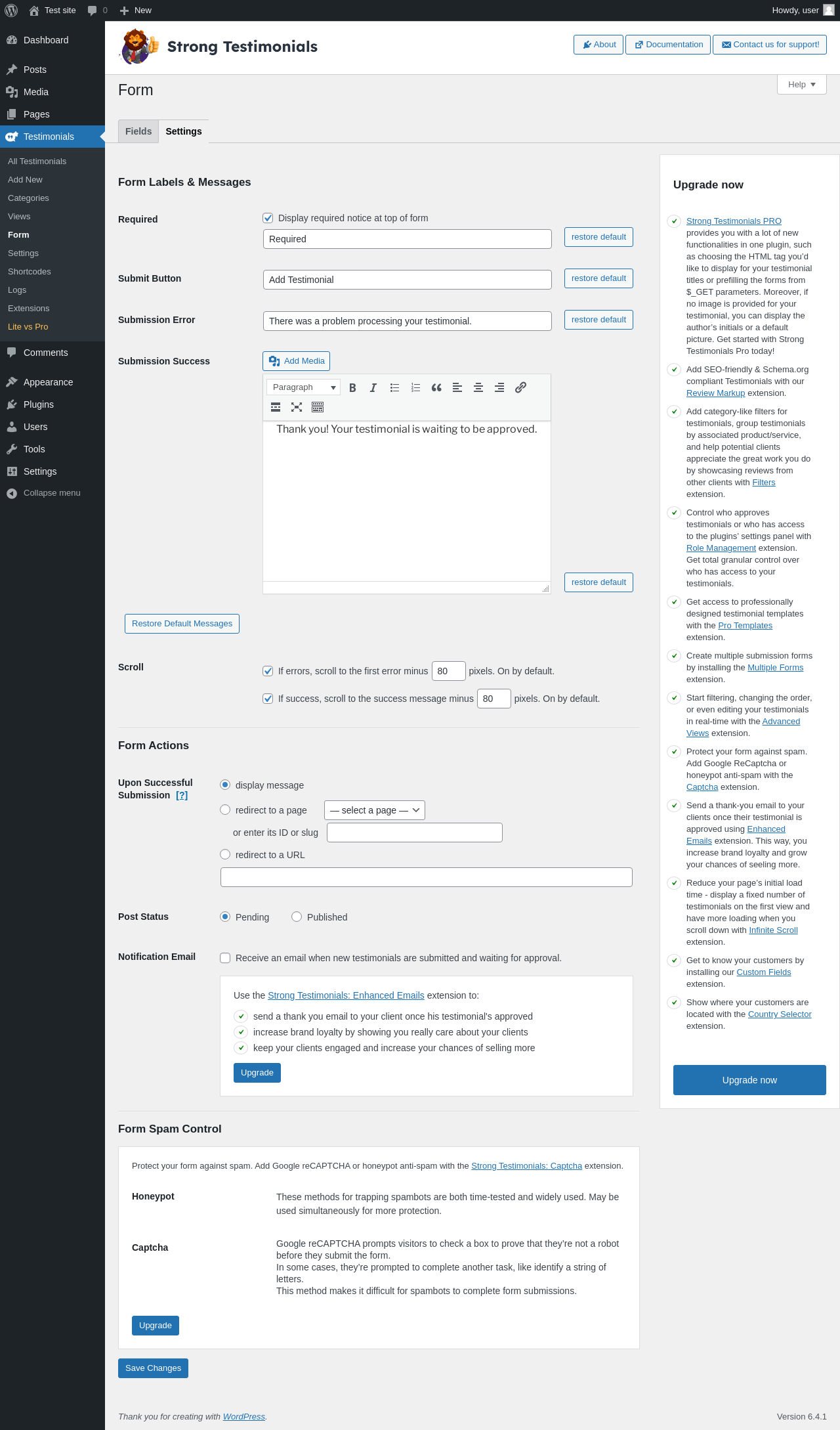Does Strong Testimonials work with WordPress 6.4.1 and PHP 8.1.12? A smoke test was performed on .