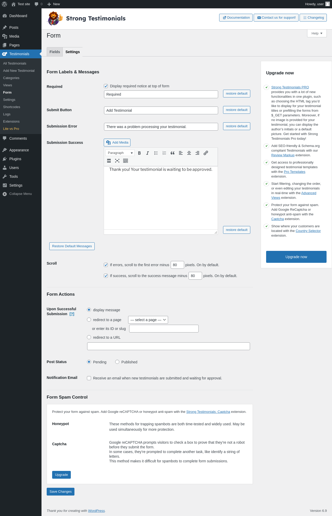 Does Strong Testimonials work with WordPress 6.9 and PHP 8.1.12? A smoke test was performed on .
